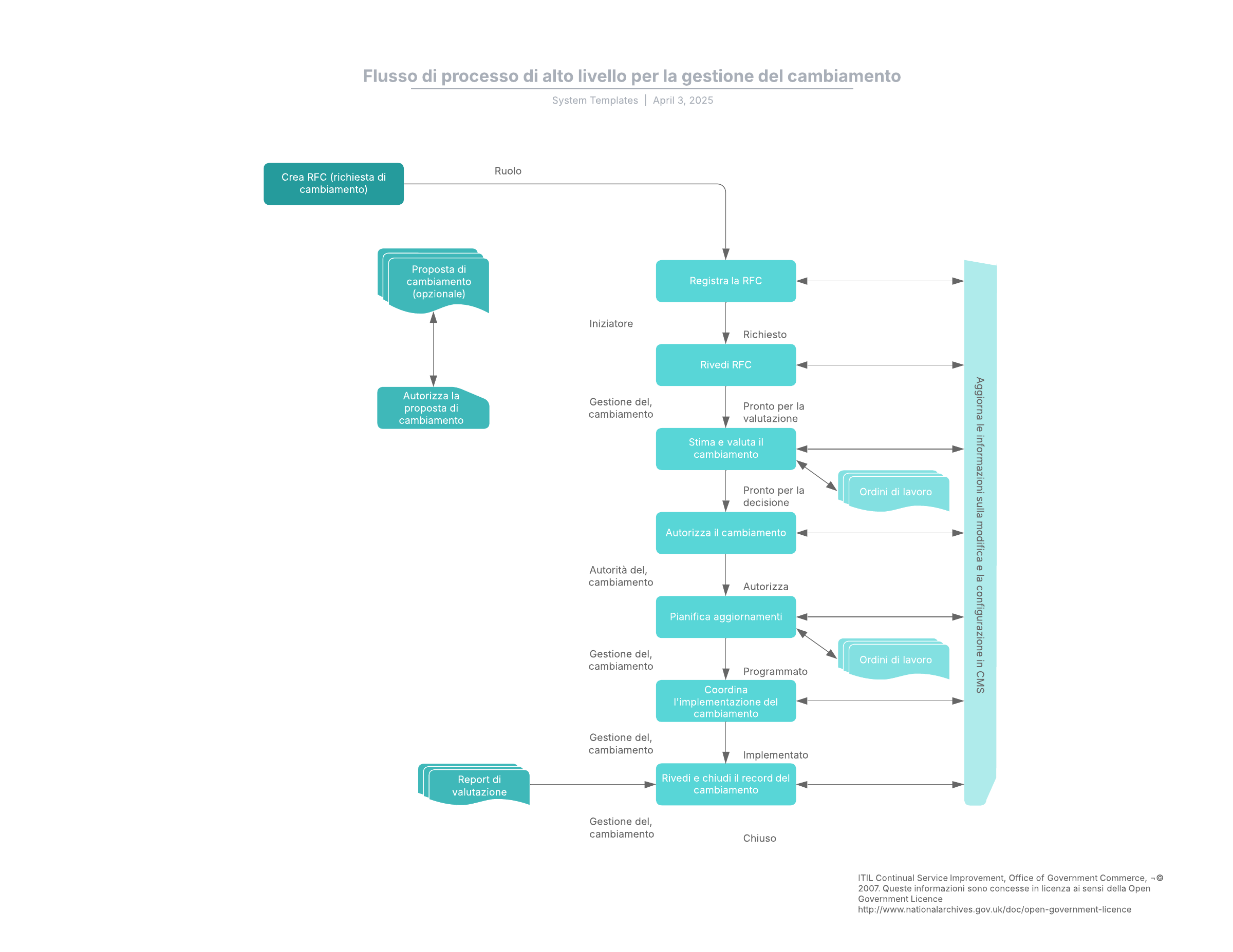 Questo modello di flusso di processo di alto livello per la gestione del cambiamento può aiutarti a: