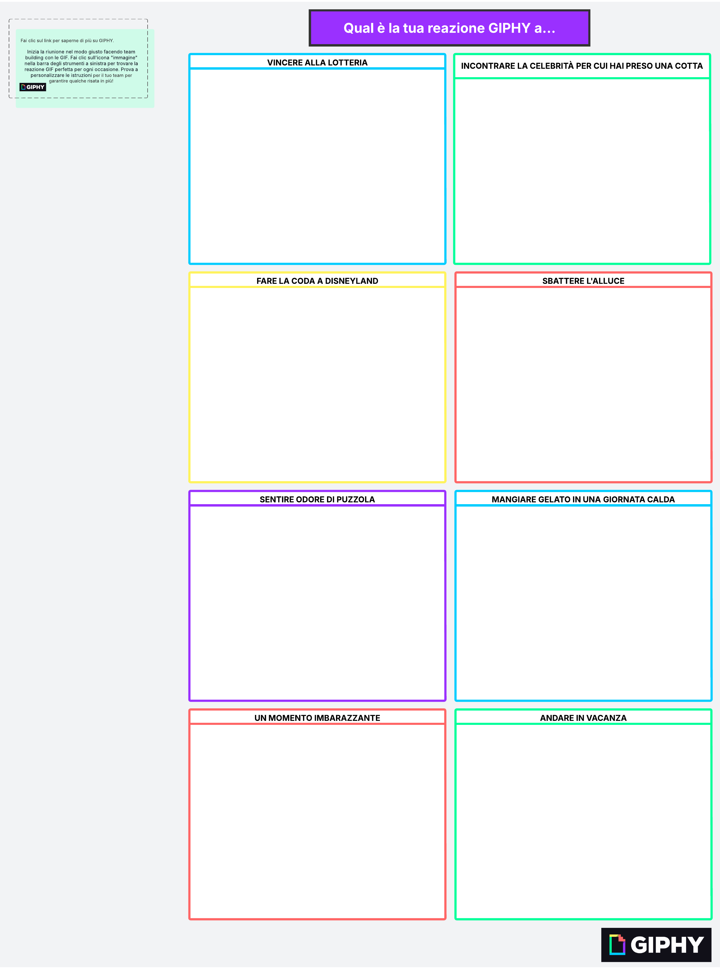Inizia la riunione nel modo giusto facendo team building con le GIF. Fai clic sull'icona "immagine" nella barra degli strumenti a sinistra per trovare la reazione GIF perfetta per ogni occasione. Prova a personalizzare le istruzioni per il tuo team per garantire qualche risata in più!