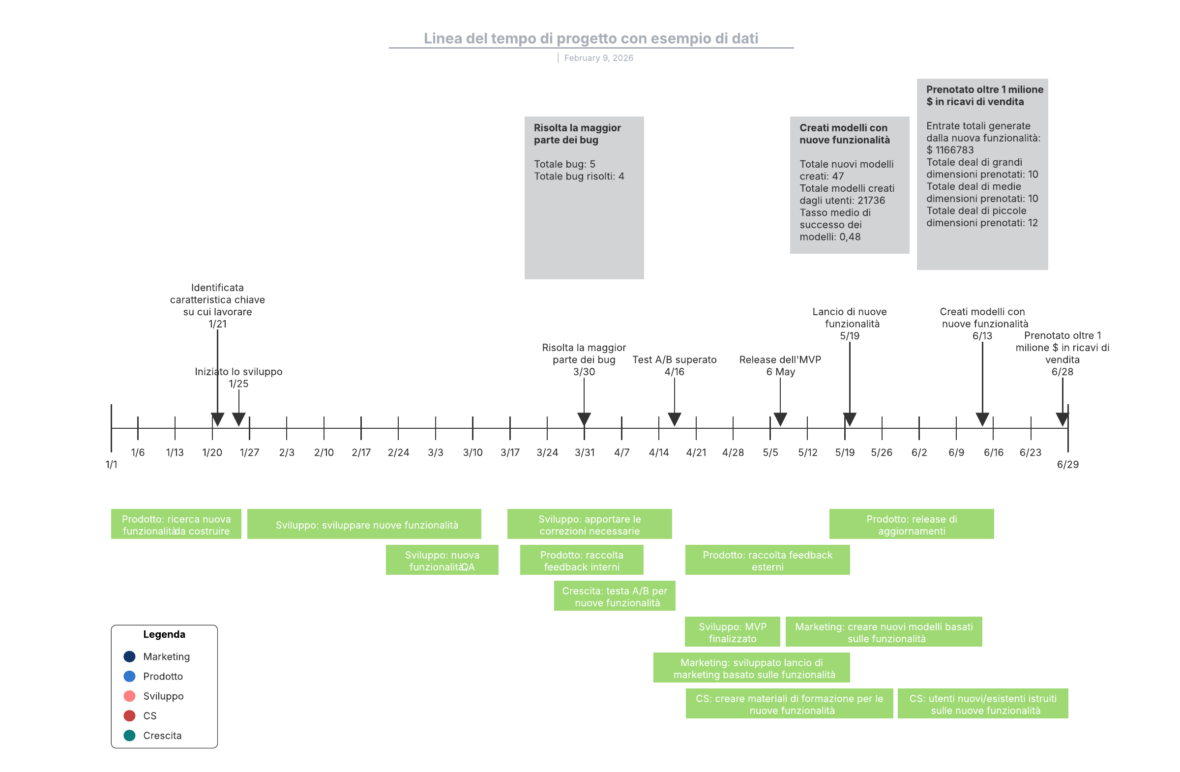 Linea del tempo di progetto con esempio di dati