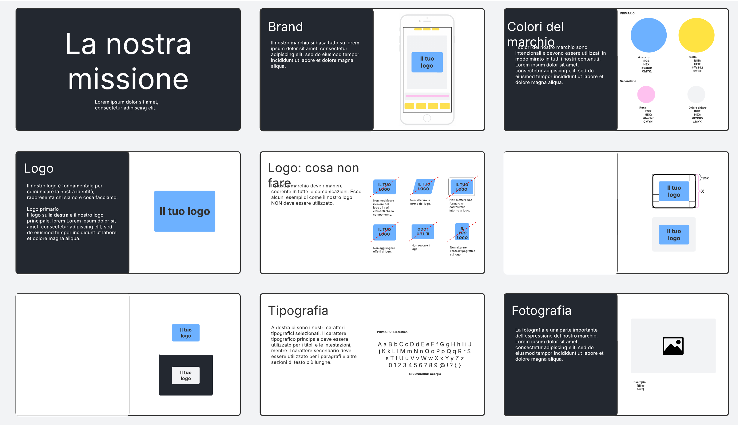 Crea contenuti creativi coerenti e professionali con questo modello di linee guida per il marchio.