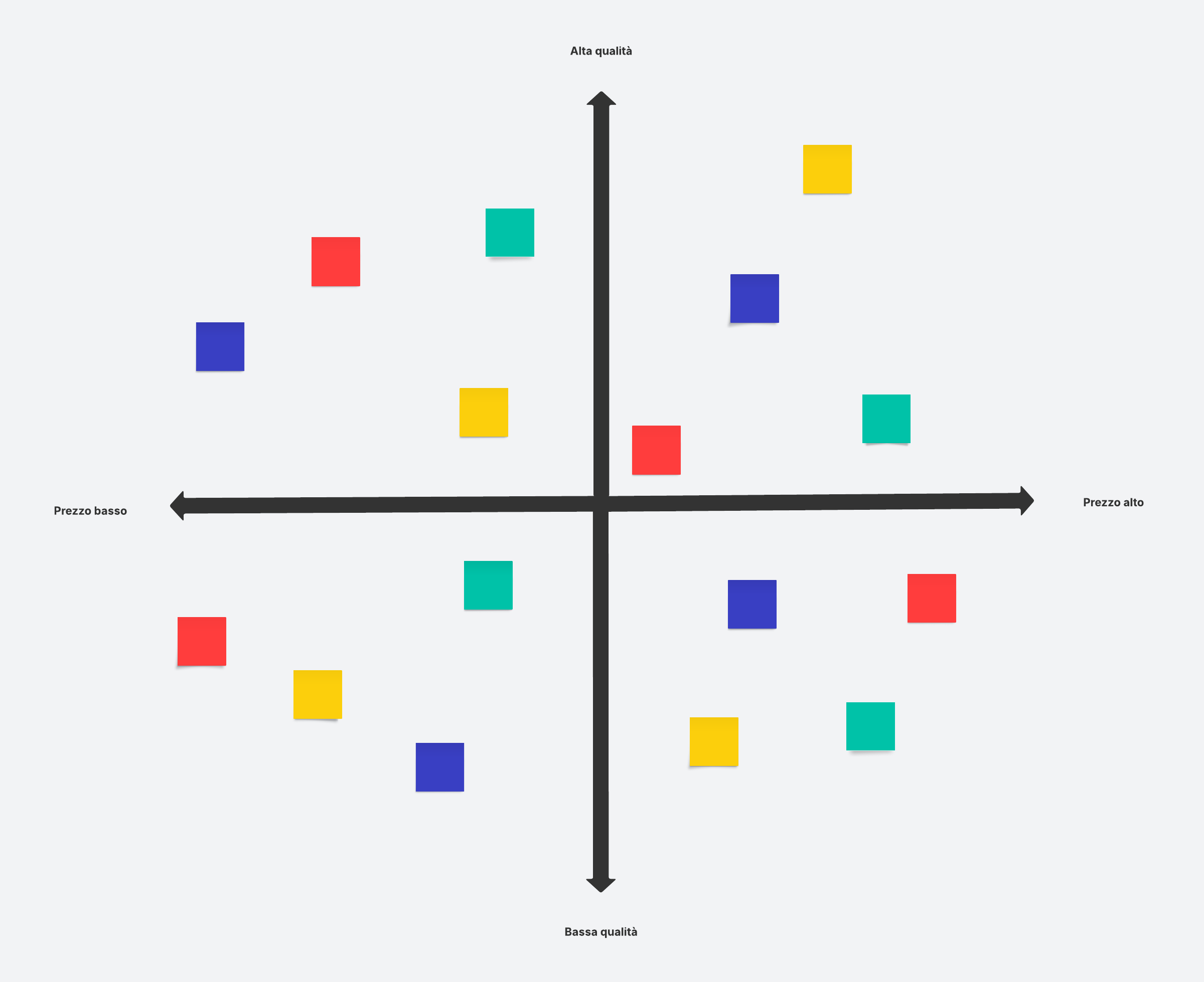 Valuta un'ampia gamma di attributi relativi a un prodotto, quali costo, affidabilità e prestazioni, con questo modello di mappa percettiva. Acquisisci una migliore comprensione del tuo prodotto, dei potenziali consumatori e di come entrambi potrebbero cambiare nel tempo.