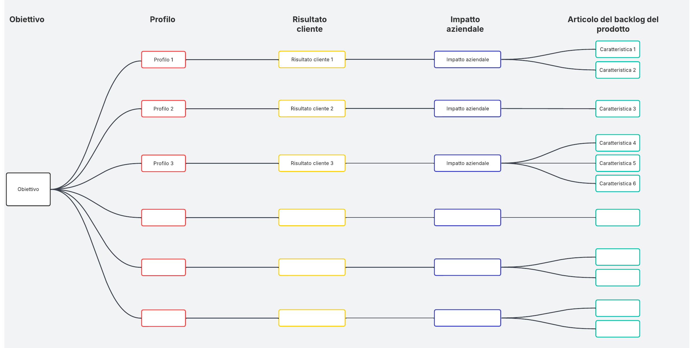 Raccogli informazioni, sviluppa possibili risultati per i profili dei clienti e considera il loro impatto sulla tua azienda con questo modello di mappatura dei risultati.