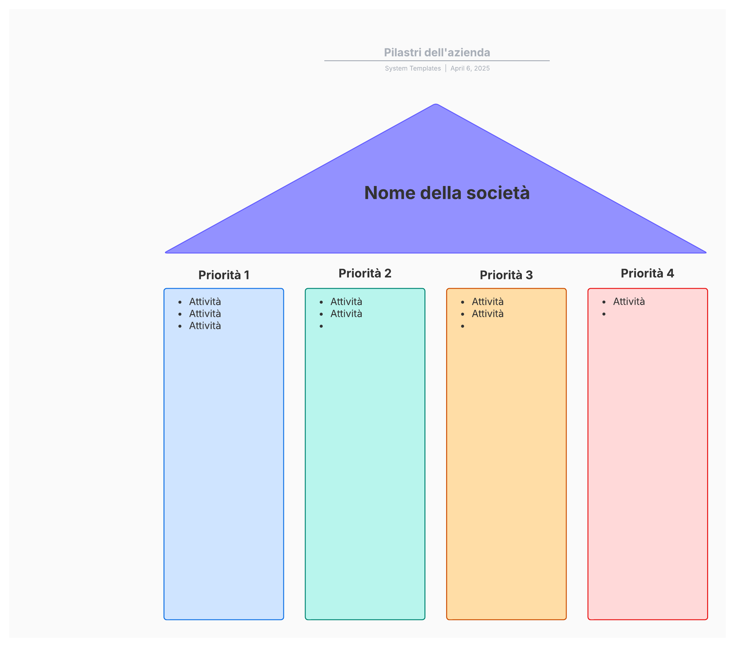 Apri questo modello e aggiungi contenuti per personalizzare questo modello di pilastri aziendali in base al tuo caso d'uso.