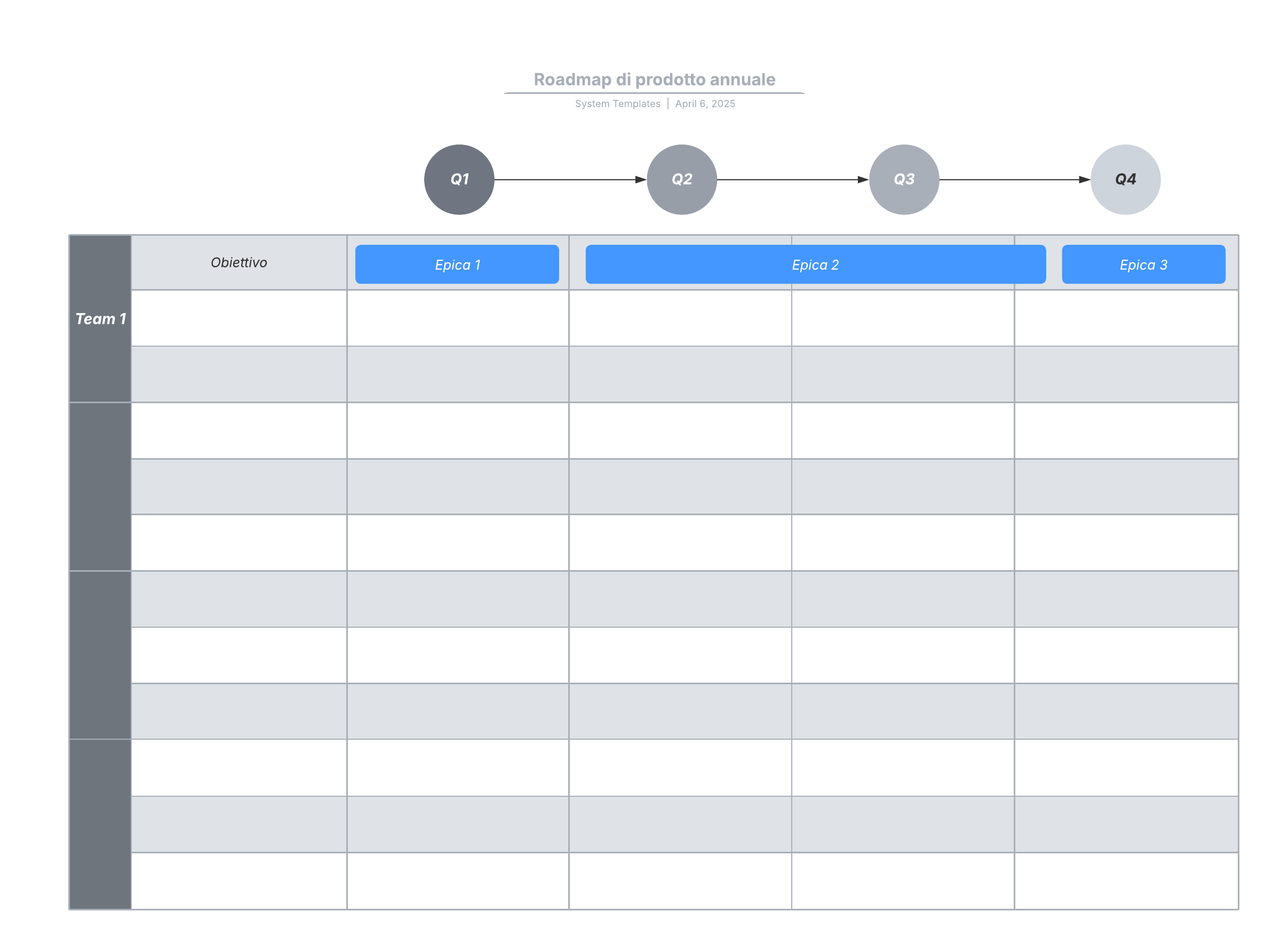 Questo modello di roadmap di prodotto annuale può aiutarti a: