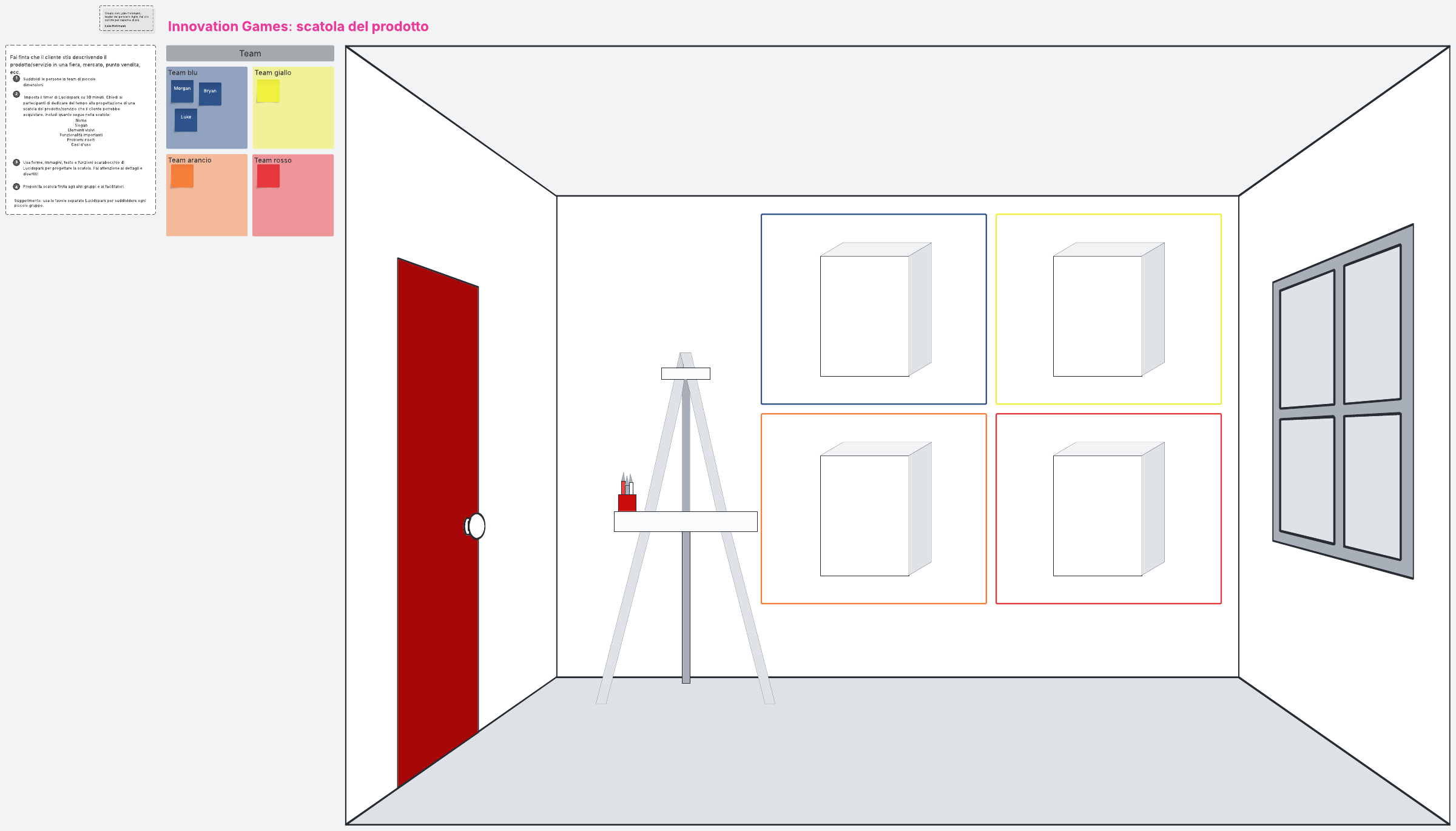 Utilizza il nostro modello di scatola del prodotto per identificare le caratteristiche più interessanti e vendibili di un prodotto o servizio. Questo approccio basato sul gioco consente ai clienti di creare e fingere di vendere il prodotto o il servizio sul mercato.