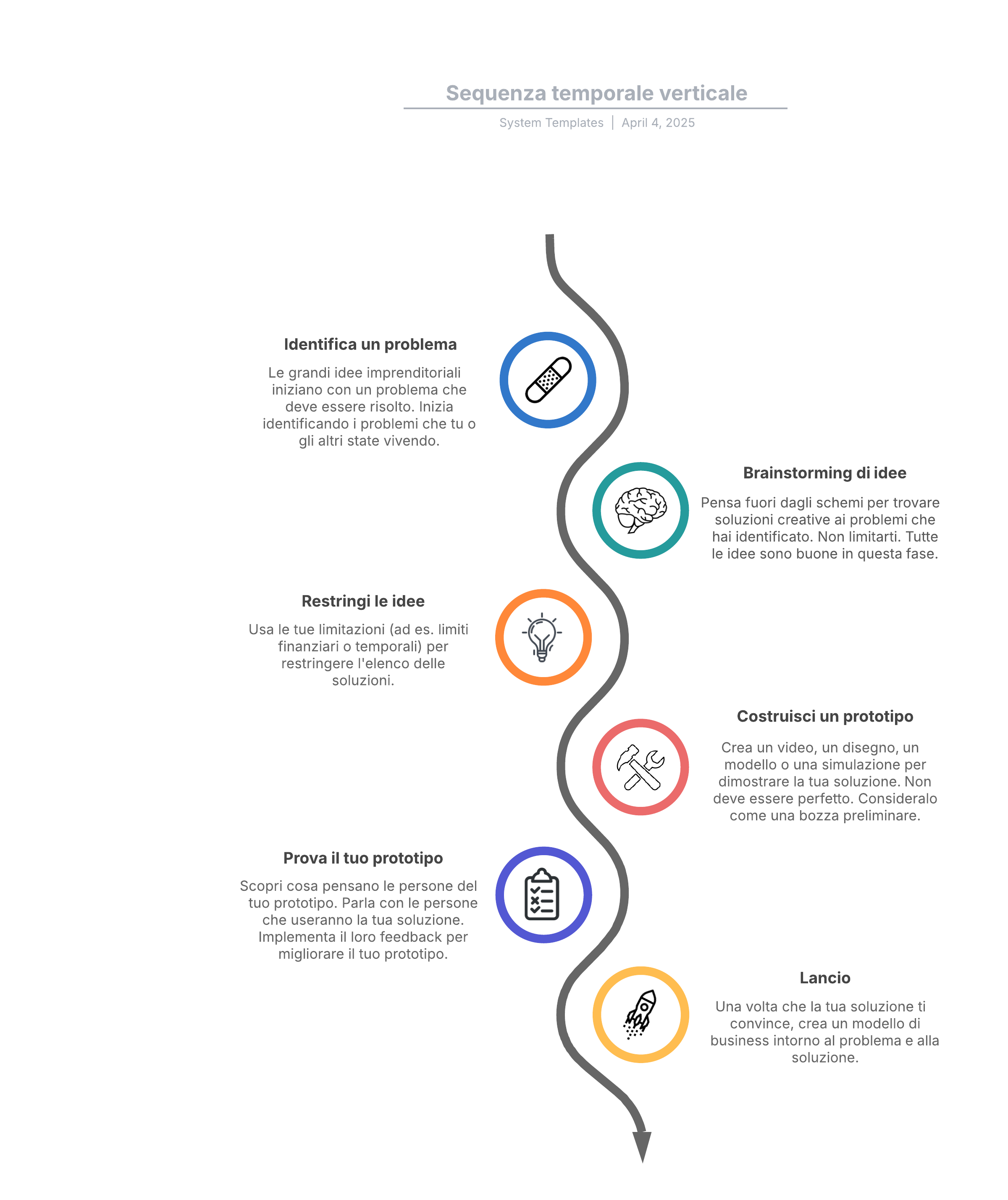 Apri questo modello per visualizzare un esempio dettagliato di una sequenza temporale verticale, che puoi personalizzare in base al tuo caso d'uso.