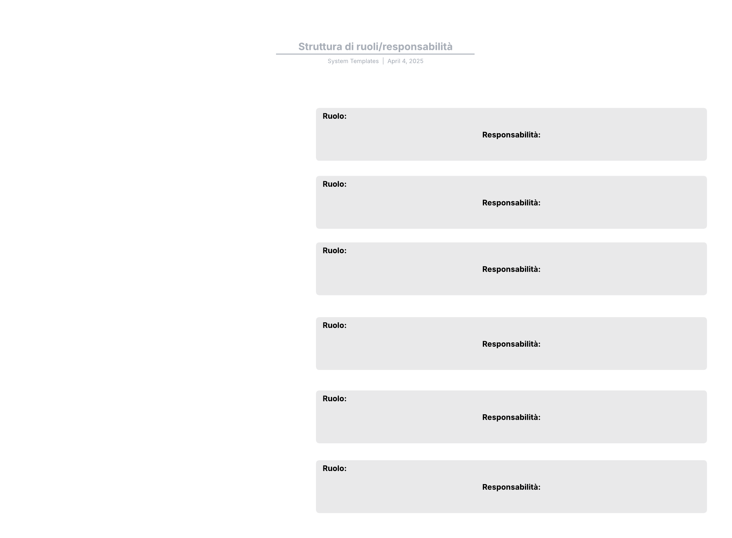 Apri questo modello e aggiungi contenuti per personalizzare questa struttura ruoli/responsabilità in base al tuo caso d'uso.