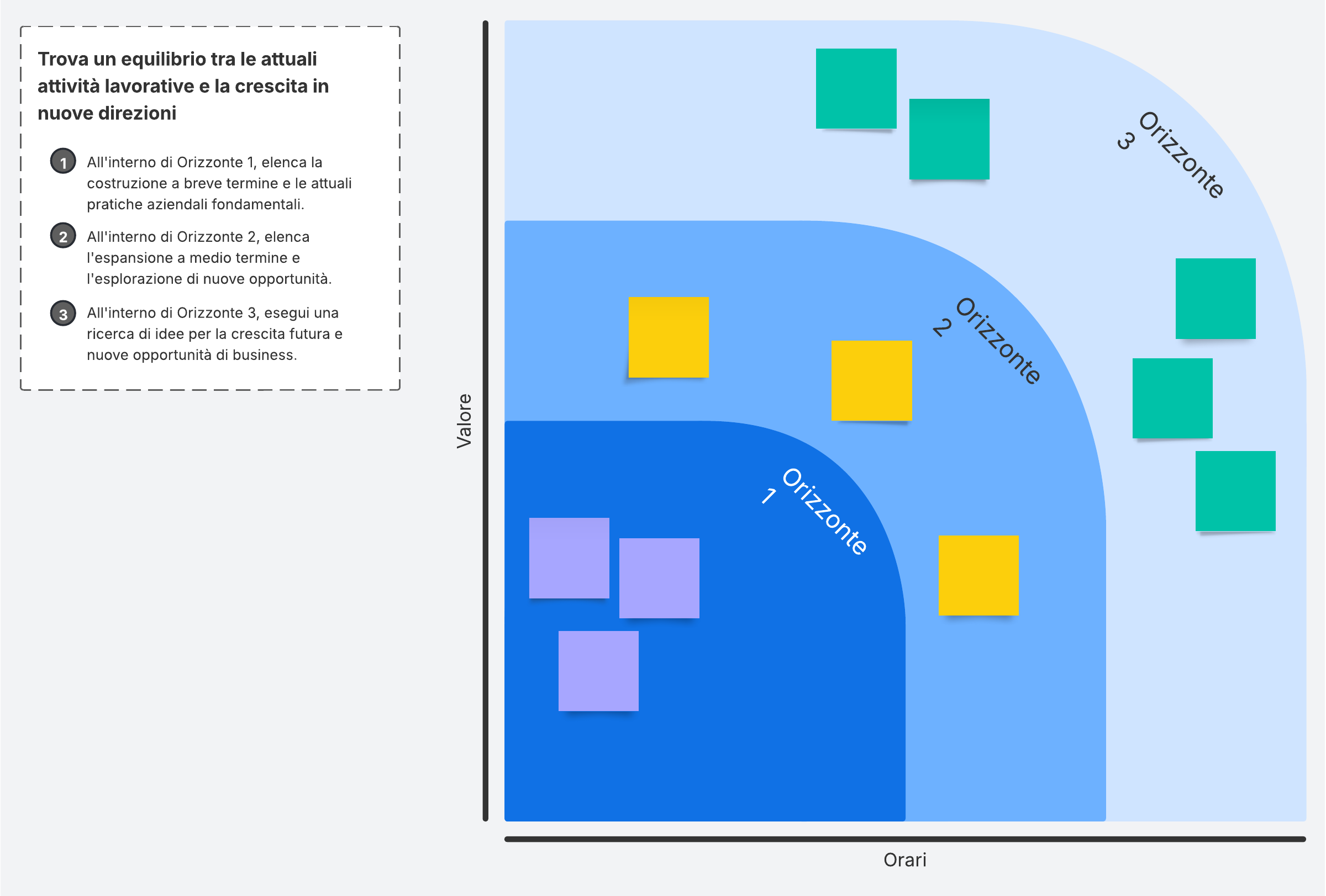 Trova l'equilibrio tra le attività attuali e la crescita futura utilizzando il modello dei tre orizzonti di crescita.