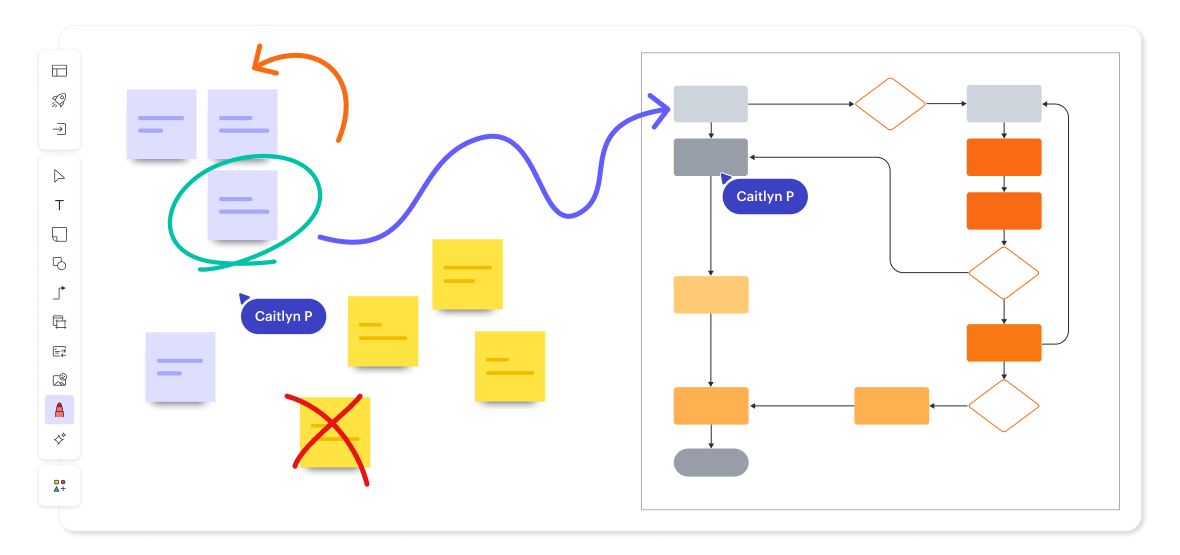 Lucid は、ただ単なる作図のためのオンラインホワイトボードを超えたインテリジェントなコラボレーションツールであり、アイデアの創出から行動までシームレスな移行を実現します。