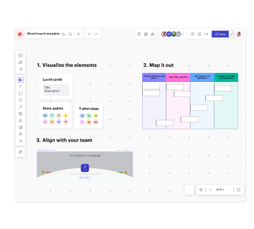 コラボレーションに最適な Lucidspark のホワイトボードでチームの共通理解を深化。図形、フリーハンド描画ツール、テキストを使ってメッセージを明確に伝えます。
