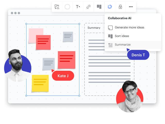 コラボレイティブ AI でステークホルダー分析を刷新。新しいアイデアを生み出しながら、ホワイトボードに追加する提案をさらに生成できます。