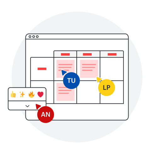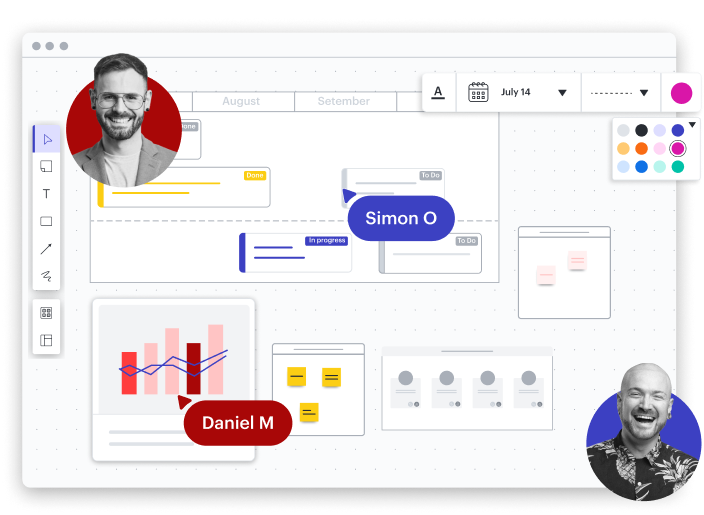 Lucidspark の視覚的キャンバスでチームの共通理解を深化。図形、フリーハンド描画ツール、テキストを使って明確に伝わるステークホルダーマップに仕上げます。