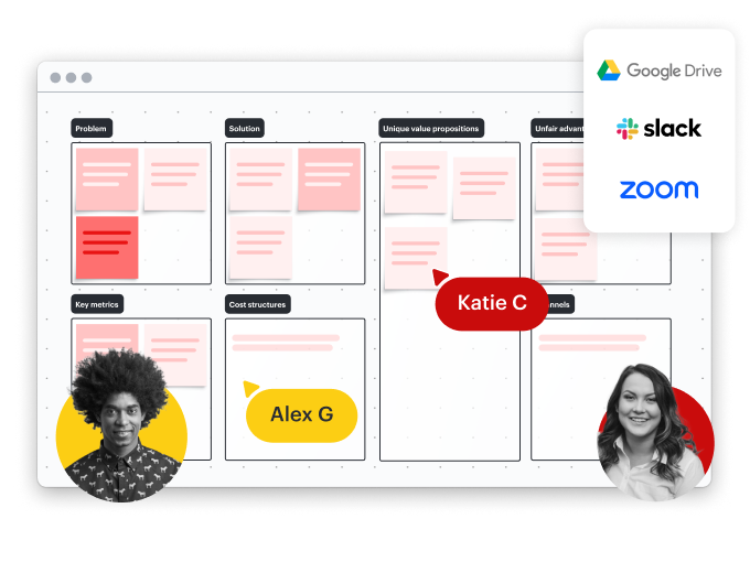 ステークホルダーマップをお気に入りのアプリに接続すれば、編集や共有も簡単に。ステークホルダーマップを Google ドライブにエクスポートするか、マップをチームの Slack チャンネルや Zoom 用 Lucidspark アプリに直接挿入して、あらゆるコラボレーションにビジュアルを取り入れられます。