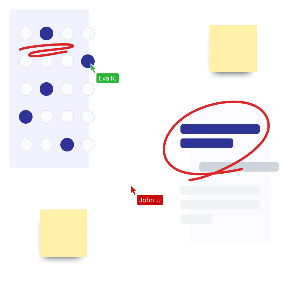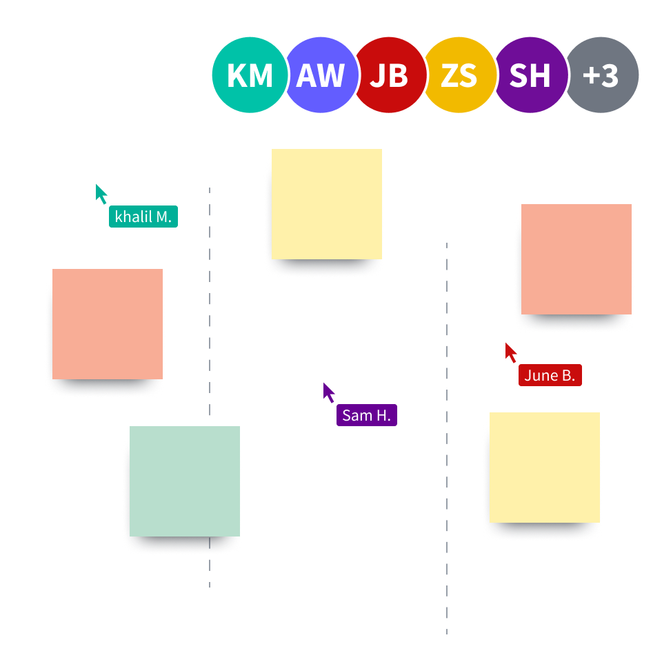 共有のビジュアルワークスペースで顧客調査の結果を収集して文書化します。チームで協力して顧客のインタビューやアンケートの内容を検討し、改善の糸口を見つけます。