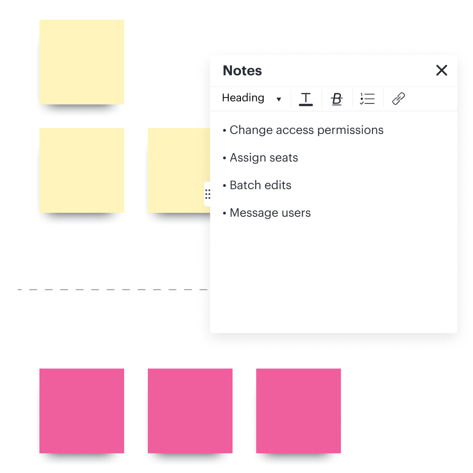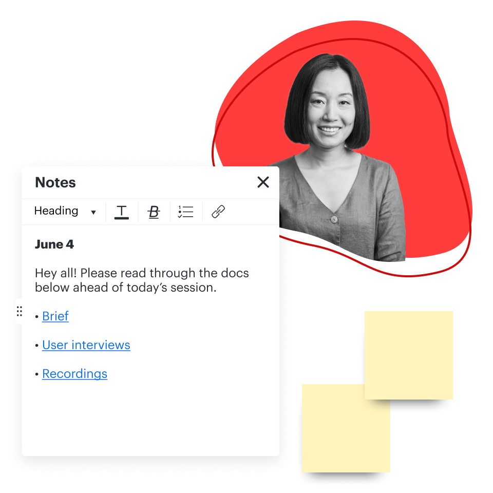 ブレインストーミングの準備ができたら、参加メンバーに事前に資料を配布し、目を通しておくように依頼しましょう。メモパネルを使えば、インタビューの書き起こしから通話の録音まで、あらゆる内容を手軽に共有できます。