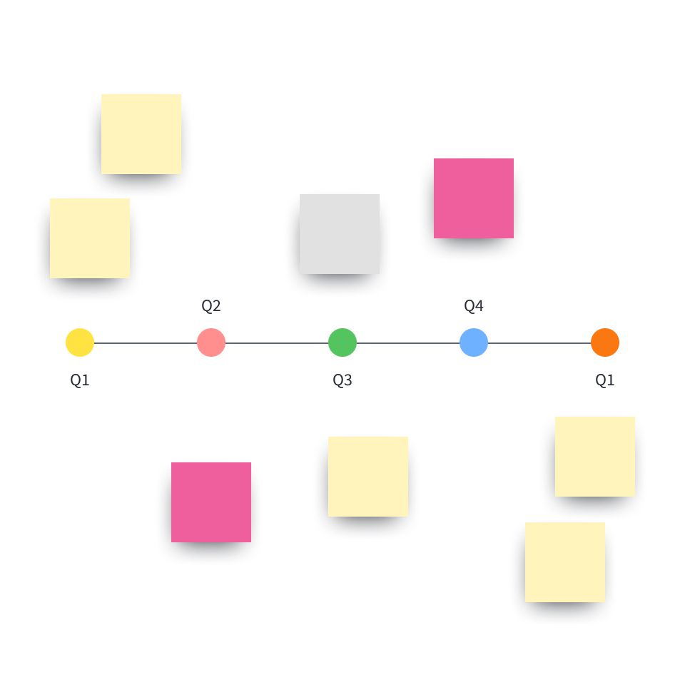 ビジネスモデルを見える化したデジタルホワイトボード上で目標やアイデアを整理し、進捗を共有すれば、製品ロードマップで戦略を検討したり、共有のリアルタイムボード上で目標へ向かってスプリントを開始するのもスムーズです。