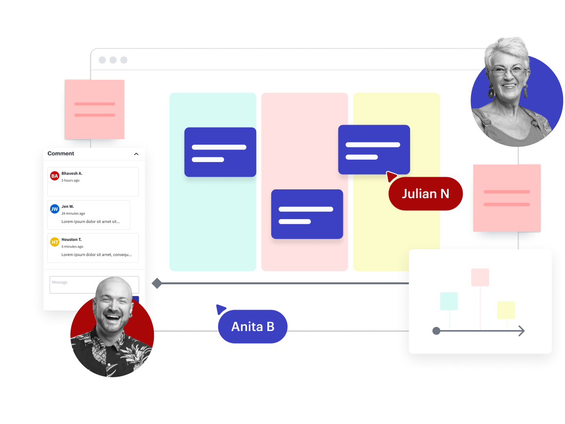 一緒に過ごす時間を最大限に活用しましょう。Lucidspark を使用すると、チームの最高のアイデアを集め、優先順位を調整して、アイデアの立案から実行へシームレスに移行できます。