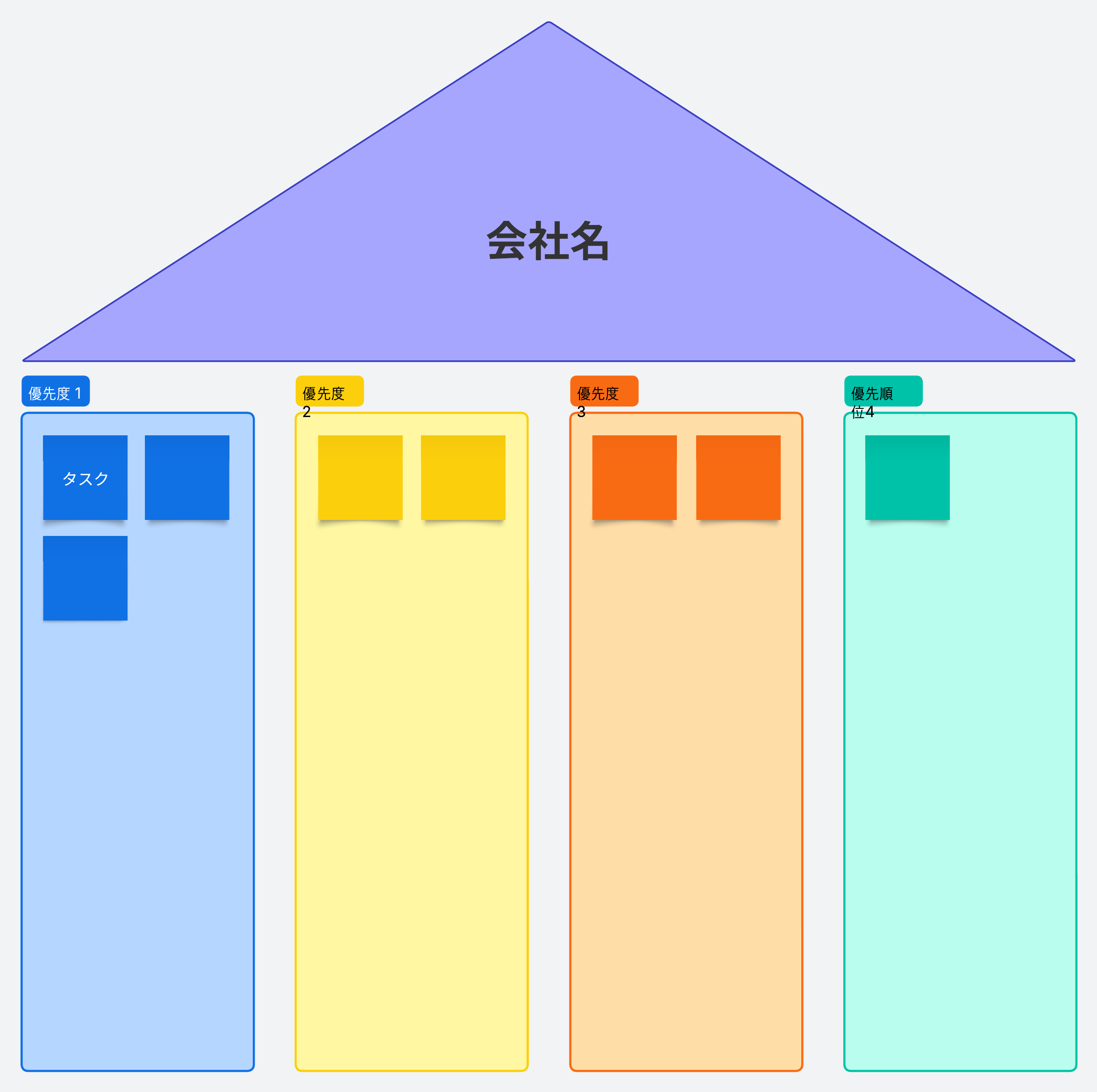この会社の柱テンプレートを使用して、日常業務が会社の優先事項の達成にどのように貢献しているかを明確にしましょう。