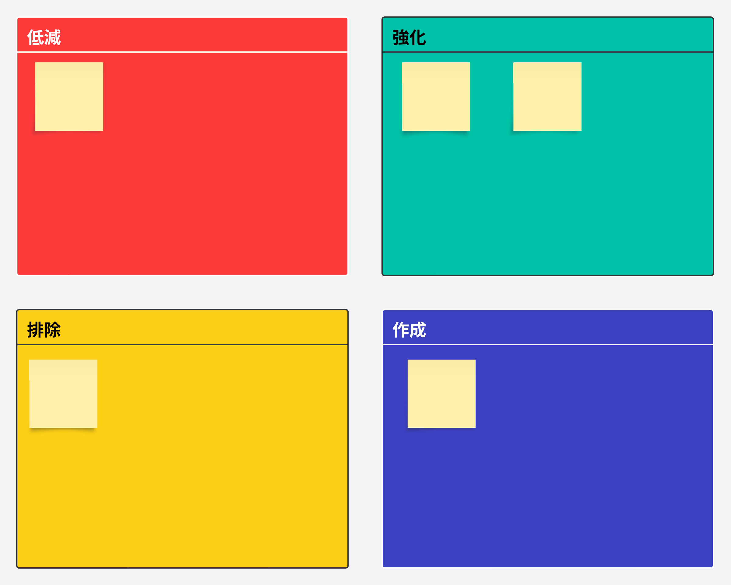 この目的のために、「排除」「低減」「強化」「創出」という4つの視点から製品要素を評価する4アクションプラン・フレームワークを活用しましょう。
