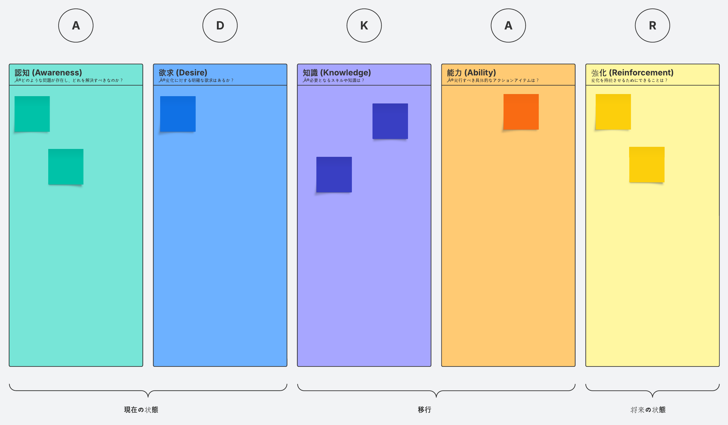 ADKARモデル (認知、欲求、知識、能力、強化) のチェンジマネジメントフレームワークを活用し、行動やプロセスに持続的な変化を起こしましょう。