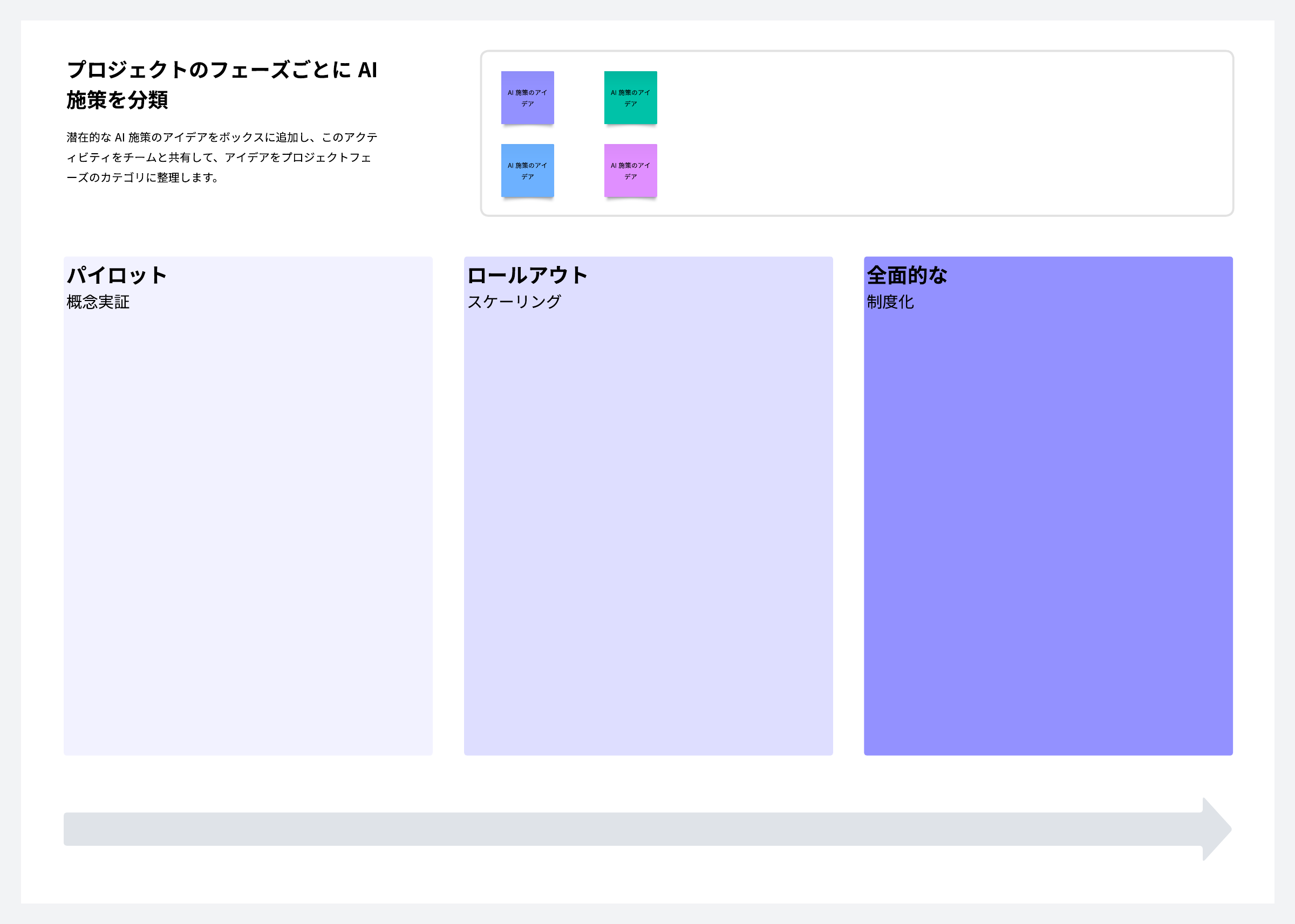 潜在的な AI 施策をプロジェクトのフェーズに分類します。