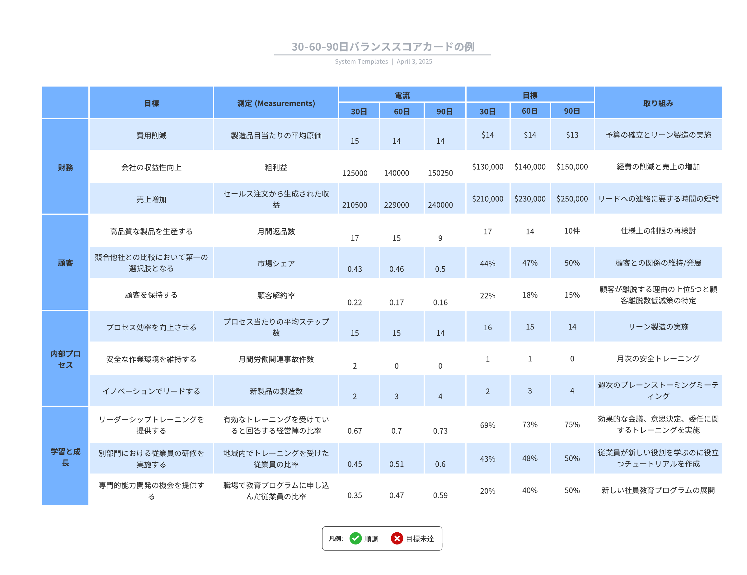 このテンプレートを開き、ユースケースに合わせてカスタマイズ可能なバランススコアカードの例を詳しく確認してみましょう。