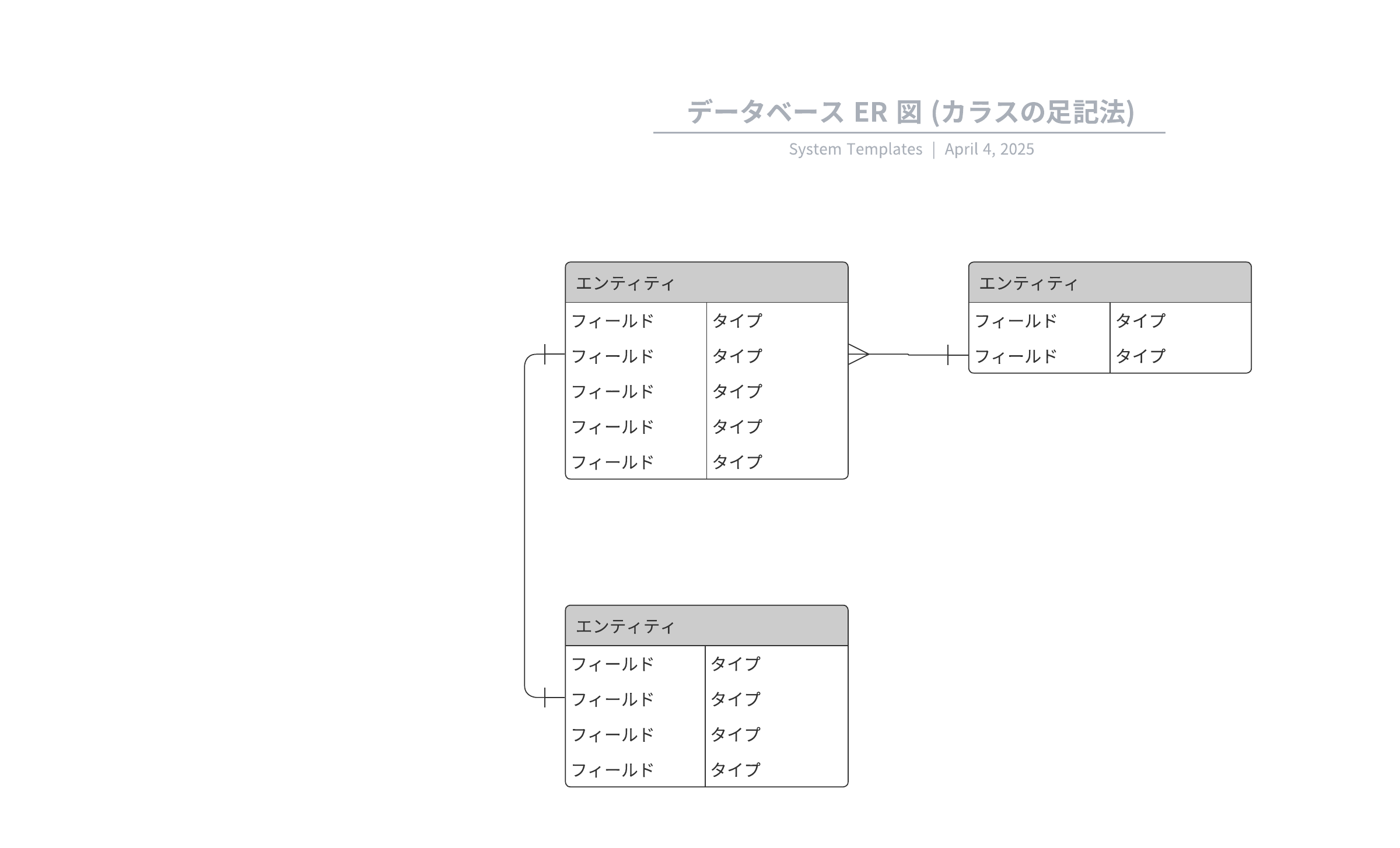 次のような用途で役立つデータベース ER 図のテンプレートです。