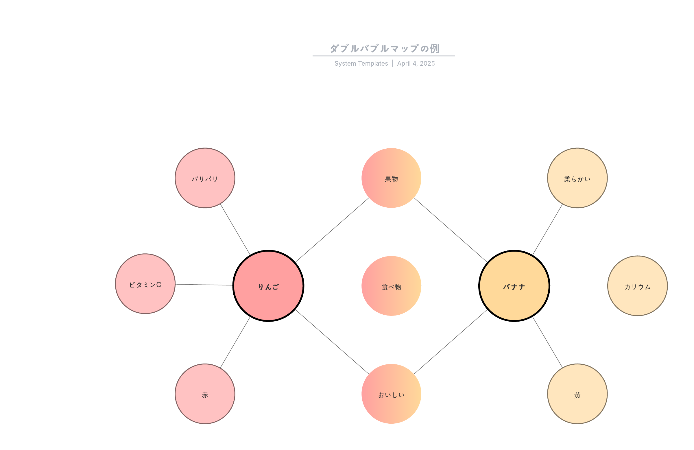 このダブルバブルマップの例テンプレートは以下のような用途に役立ちます。