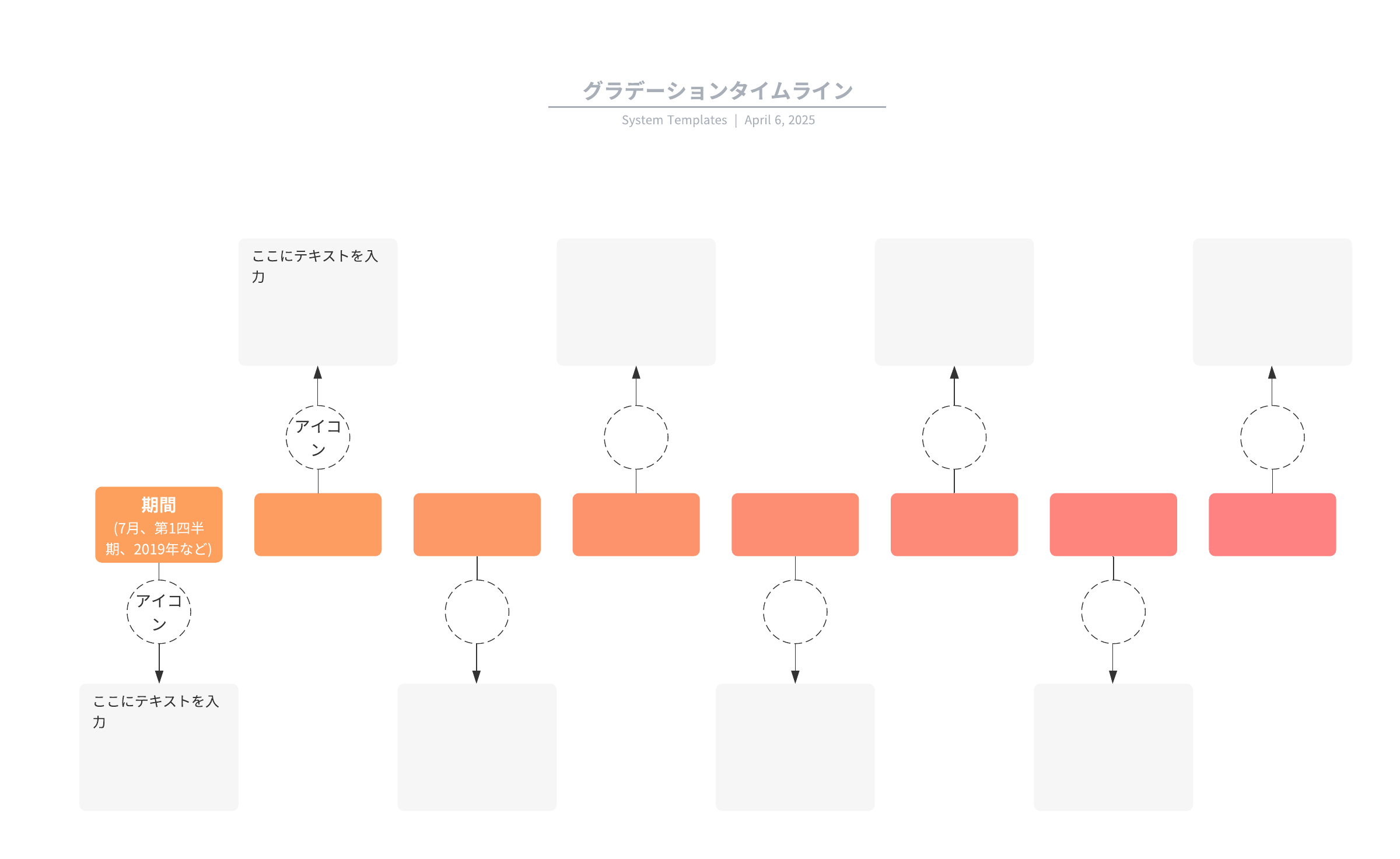 ユースケースに合わせて水平型のタイムラインをカスタマイズするには、このテンプレートを開き、コンテンツを追加します。