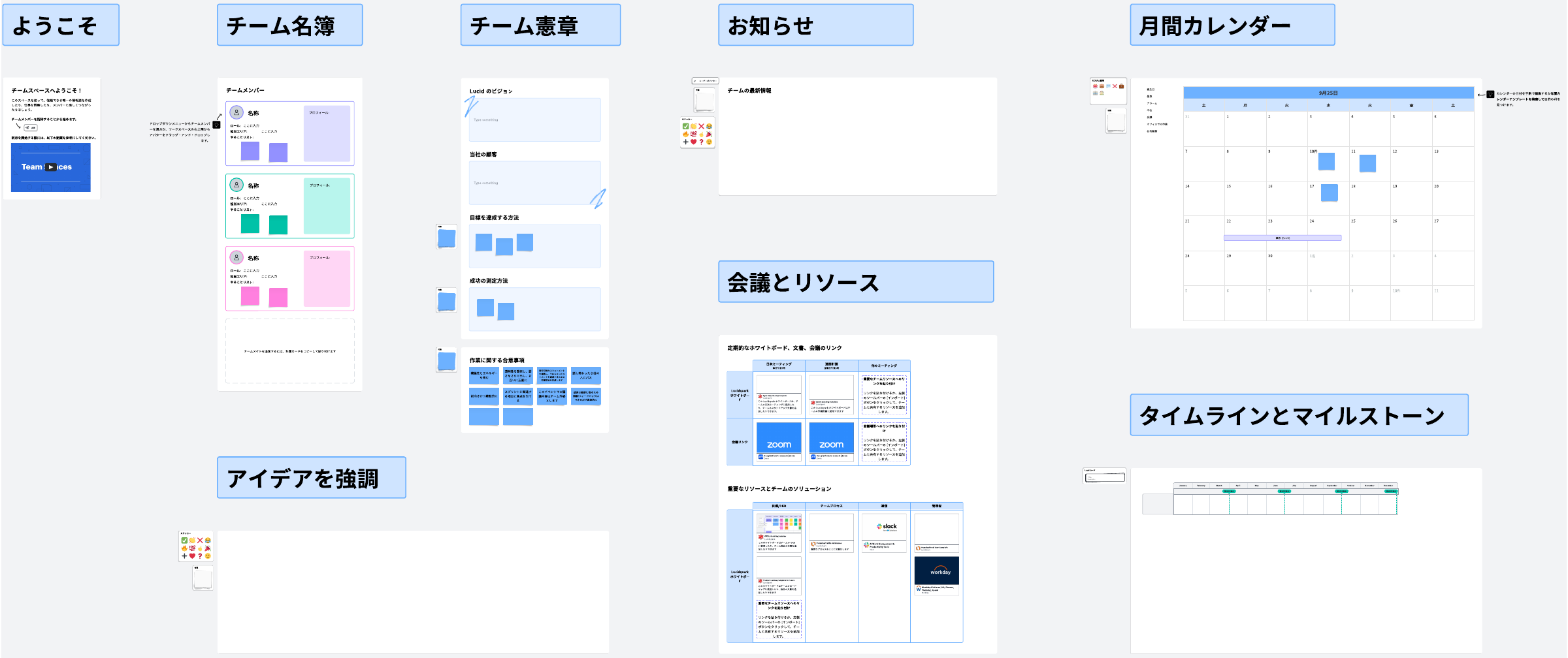 このスペースを使って、信頼できる唯一の情報源を作成したり、仕事を調整したり、チームと楽しくつながったりましょう。