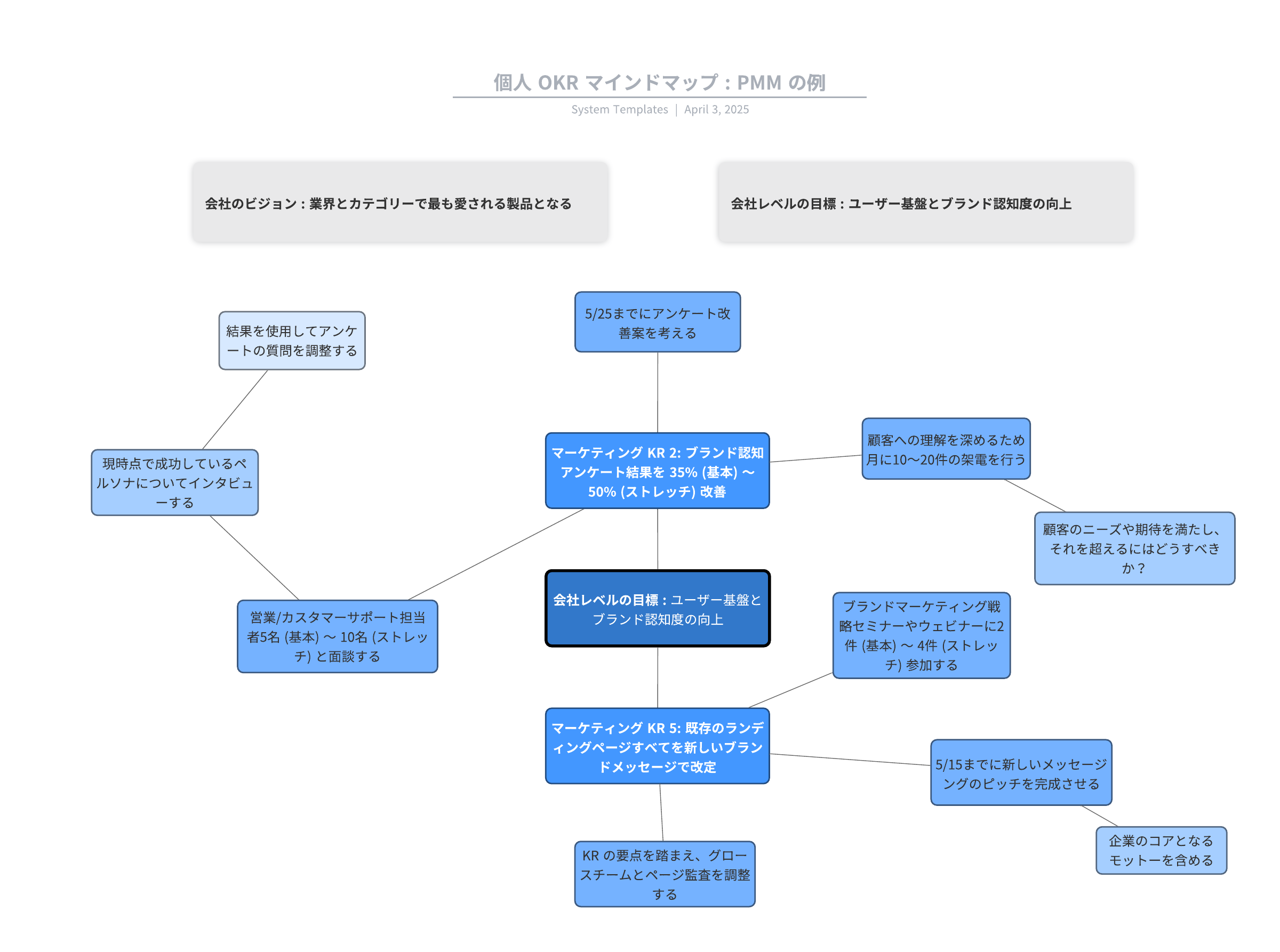 このパーソナル OKR マインドマップテンプレートは以下のような用途に役立ちます。