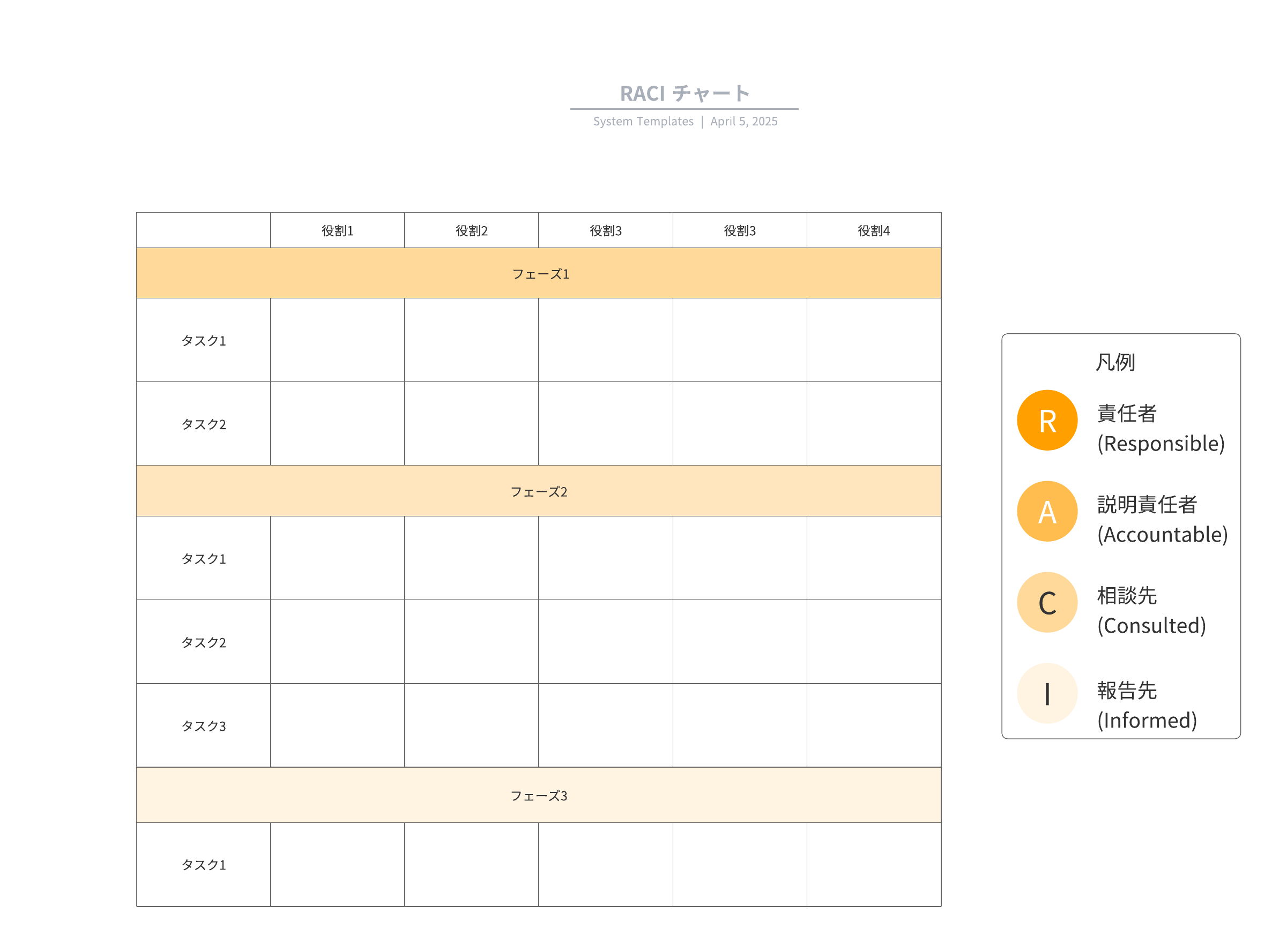 この RACI チャートテンプレートは、次の用途に役立ちます。