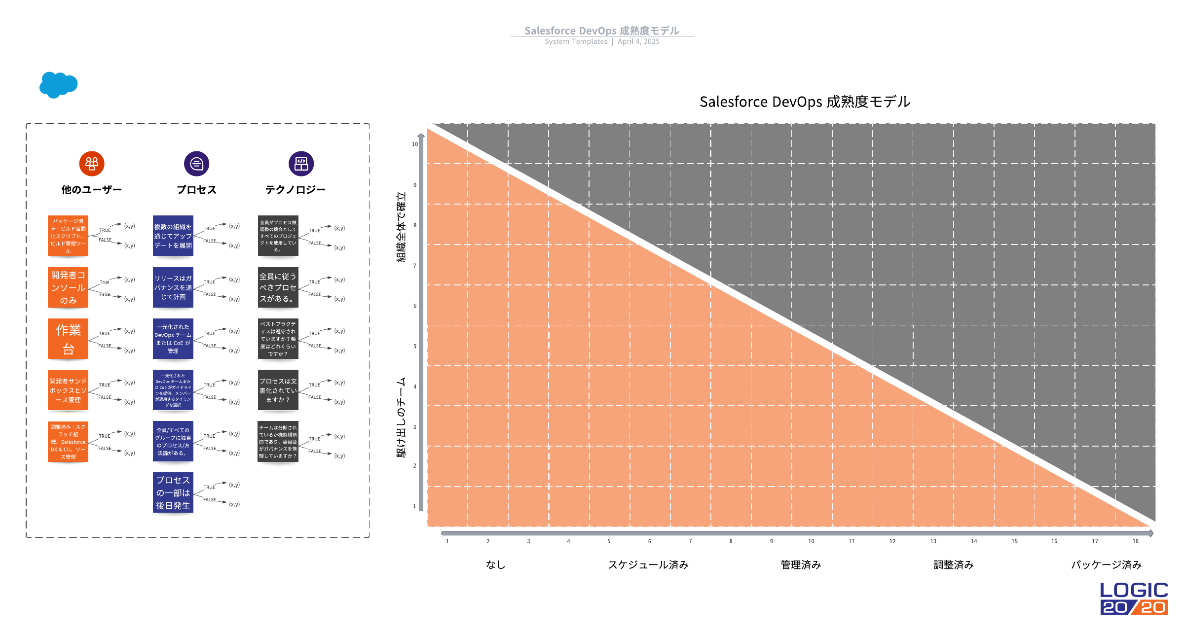 この Salesforce DevOps 成熟度モデルは以下のような用途に役立ちます。