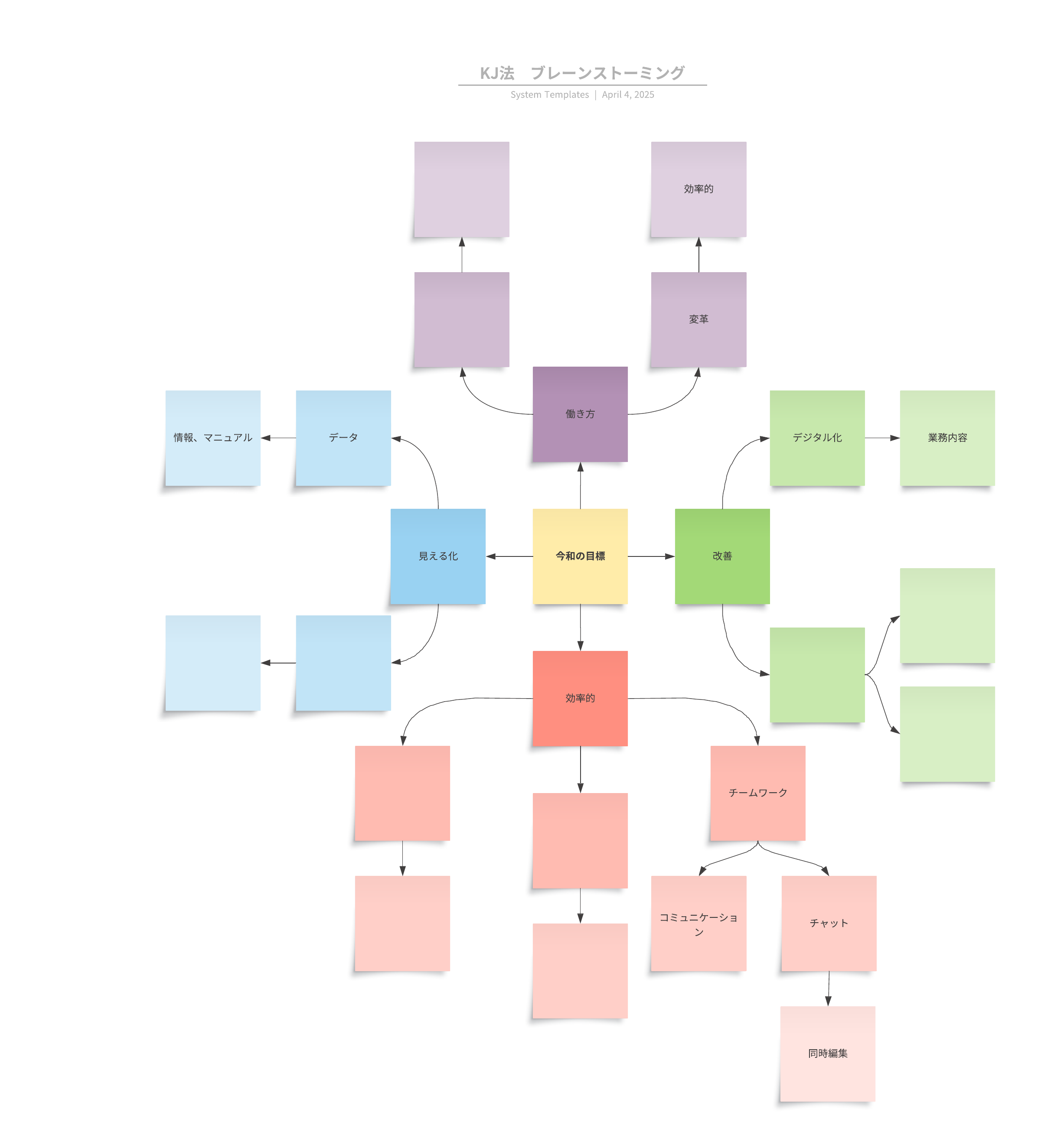 このテンプレートを使ってビジネスのアイデア、情報や会議の内容等をブレストしましょう。