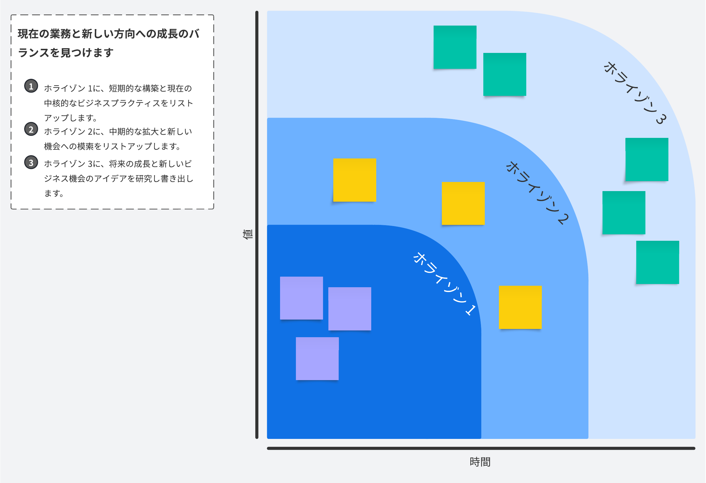 成長モデルの3つのホライゾンを使用して、現在の業務と将来の成長のバランスを見つけます。