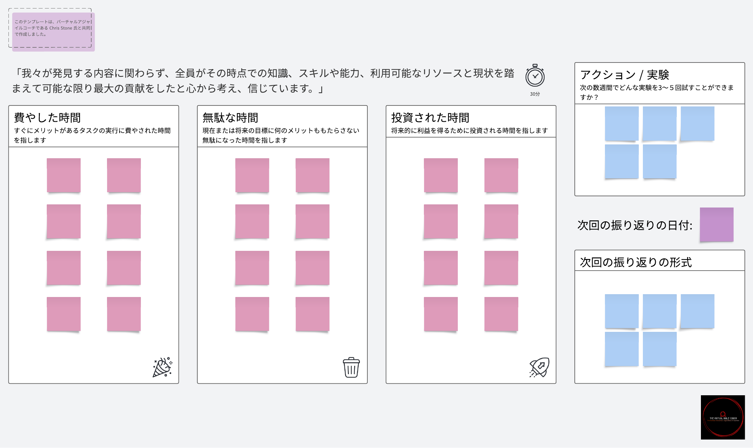 チームの時間の使い方に注目します。上手に使っているか、無駄にしているか、投資しているかを考えてみましょう。