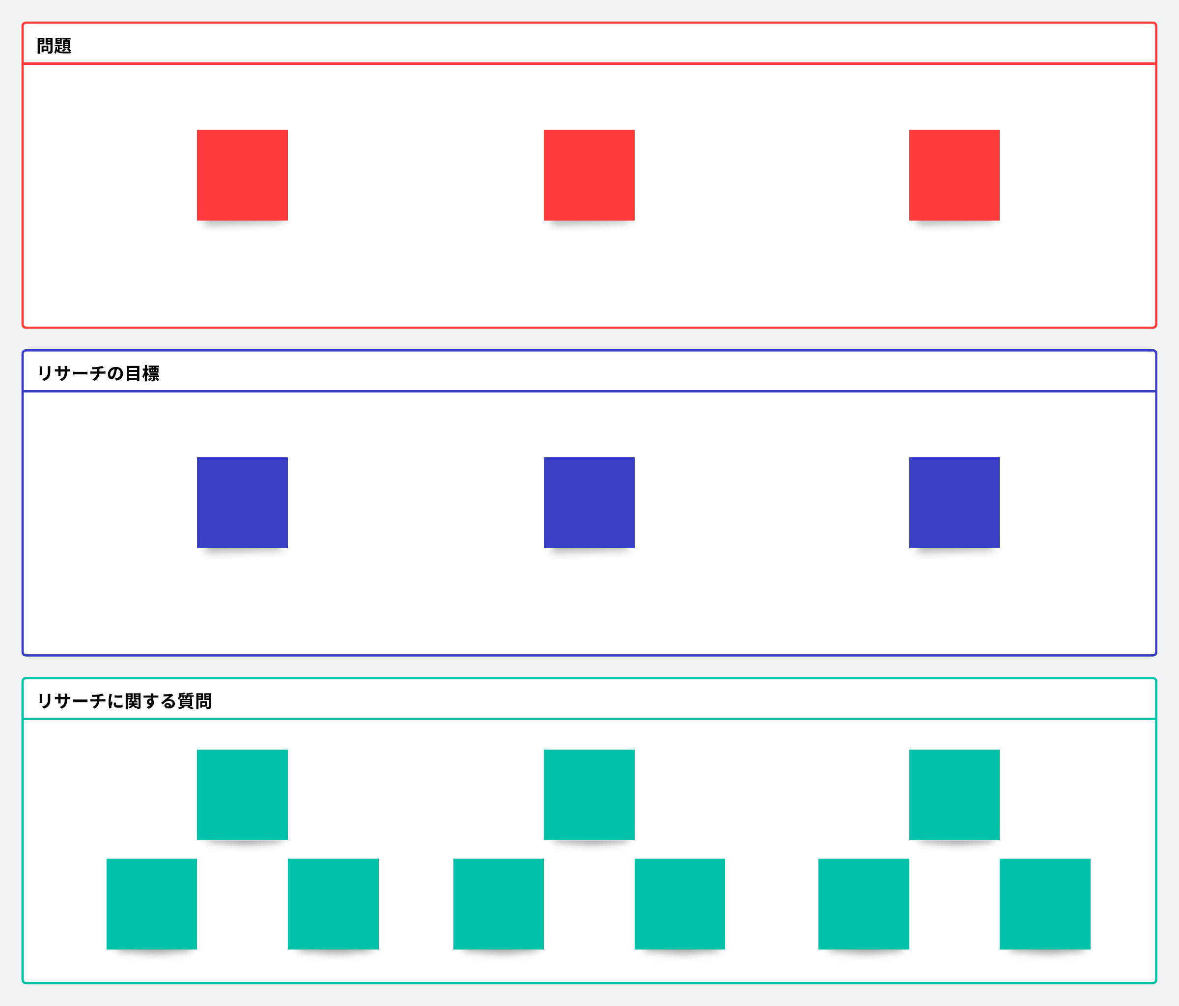 質問をし、主要なコンポーネントを概説し、フィードバックを集め、リサーチの目標を設定するのに役立つリサーチ計画です。
