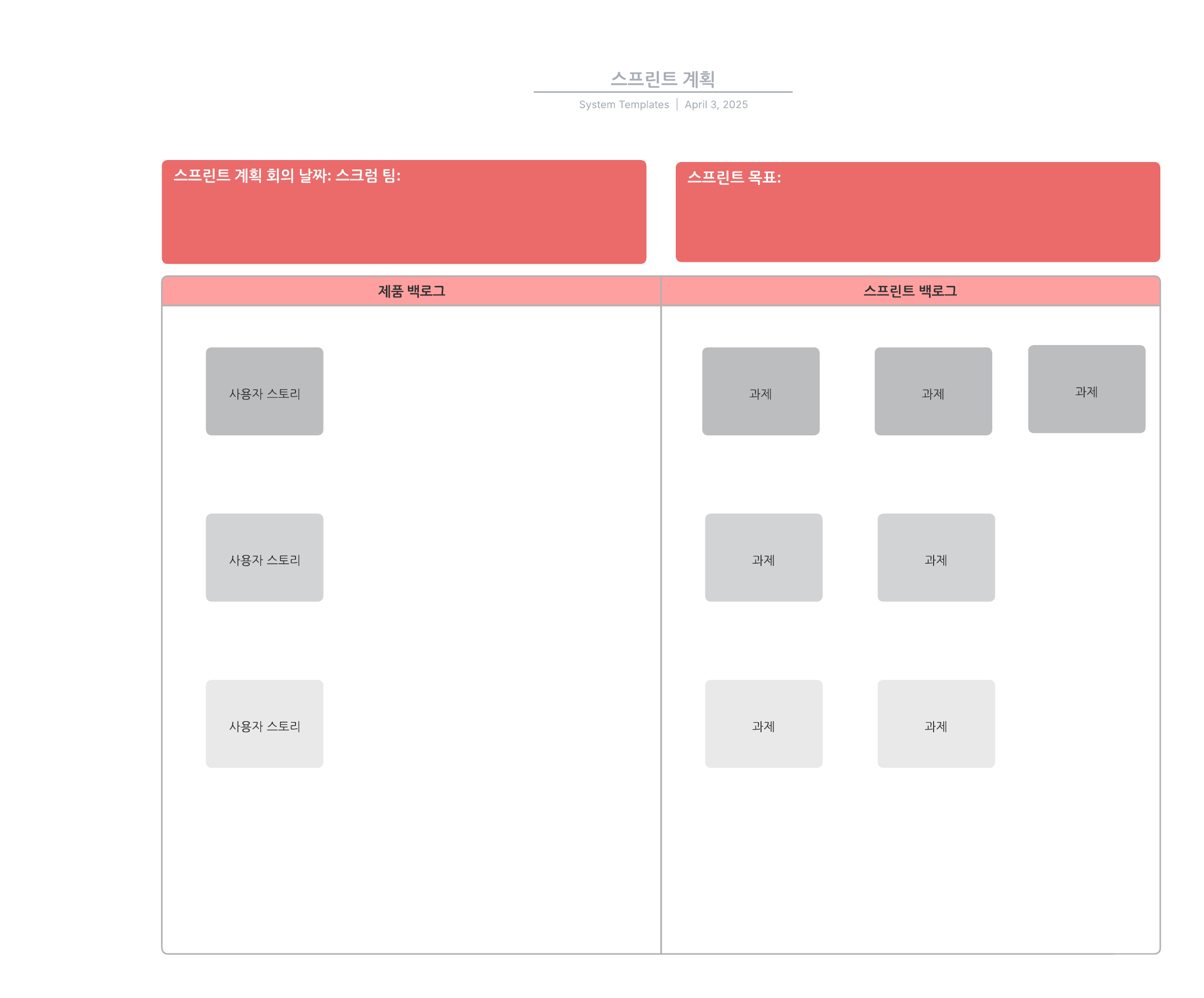 이 템플릿을 열고 내용을 추가하여 이 스프린트 계획 다이어그램을 사용 사례에 맞춤화하세요.
