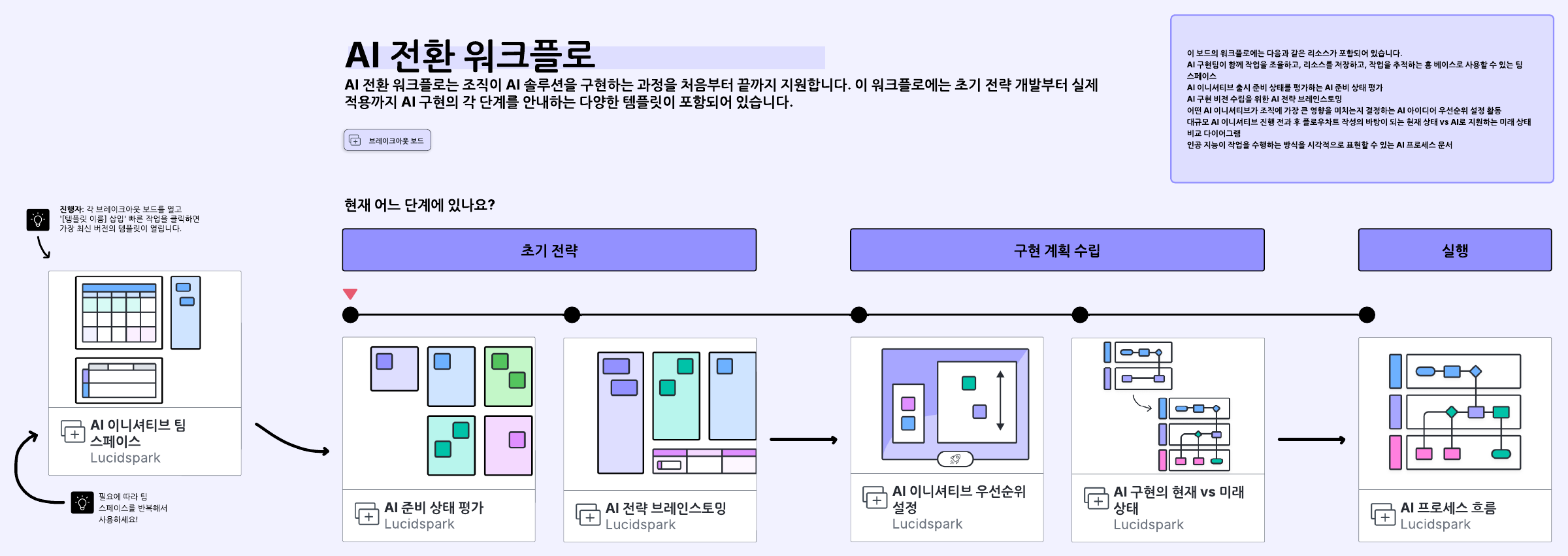 초기 전략부터 실행까지, 전체 워크플로에 걸쳐 AI 이니셔티브를 수행하세요.
