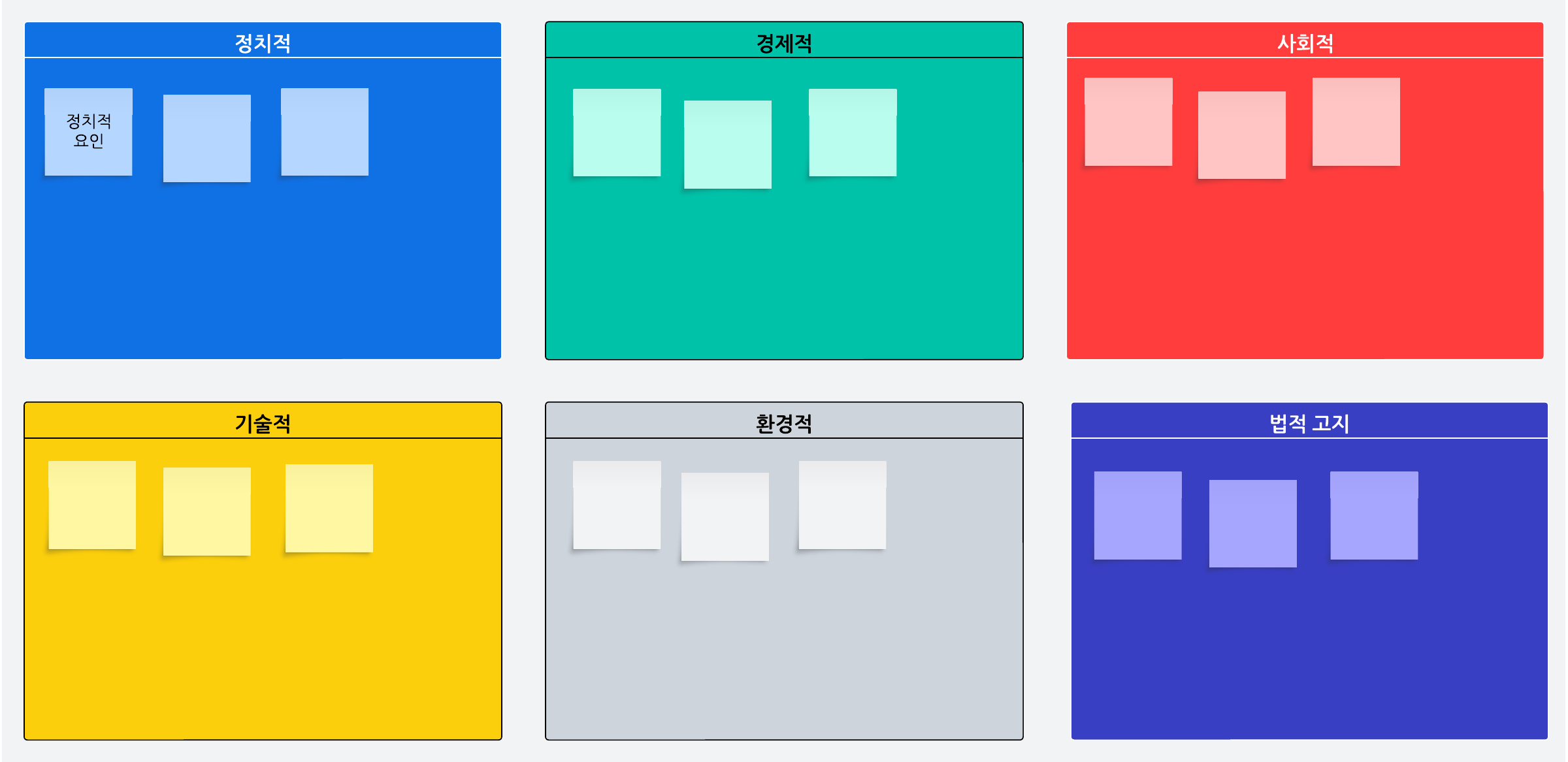 PESTEL 분석 프레임워크를 사용하면 조직에 영향을 줄 수 있는 외부 마케팅 환경 요소를 쉽게 분석하고 모니터할 수 있습니다.