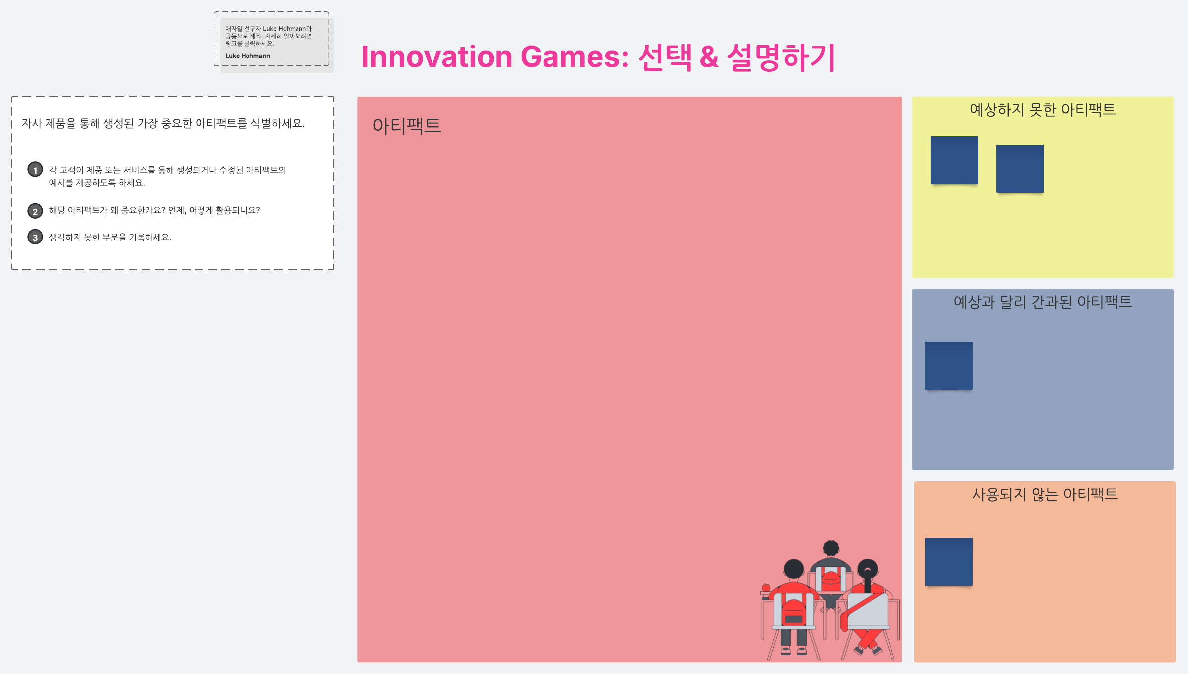 Innovation Games가 제작한 선택 & 설명하기 게임을 통해 고객의 눈에 비친 가장 중요한 아티팩트를 식별하세요.