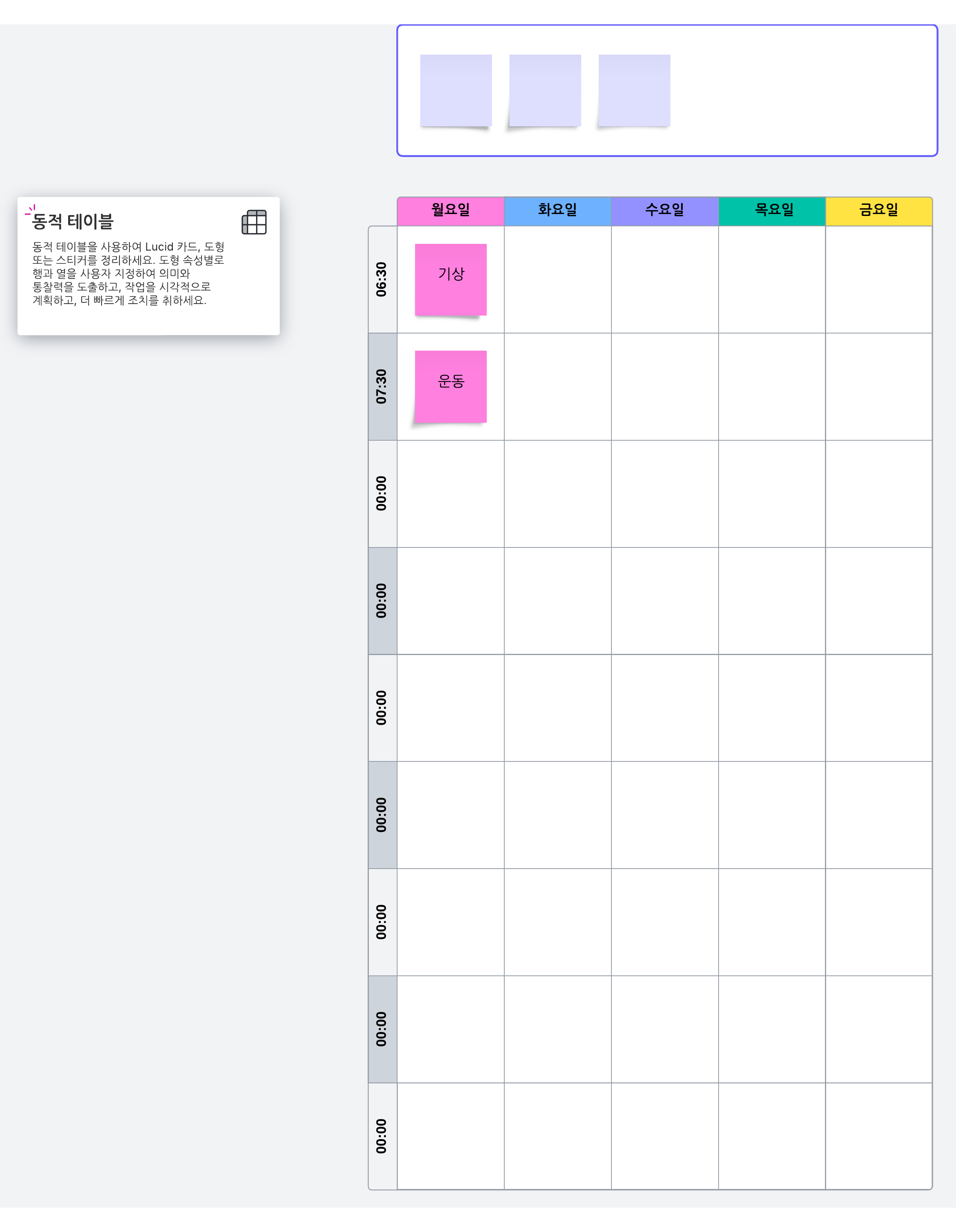 Lucidspark의 주간 스케줄 템플릿을 사용하는 방법