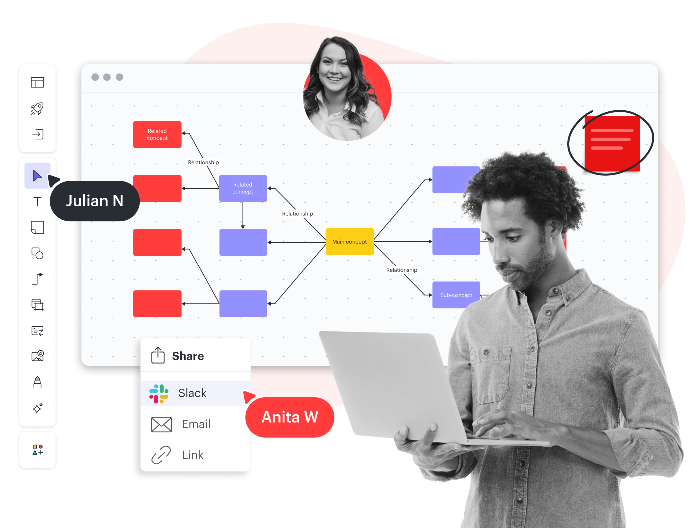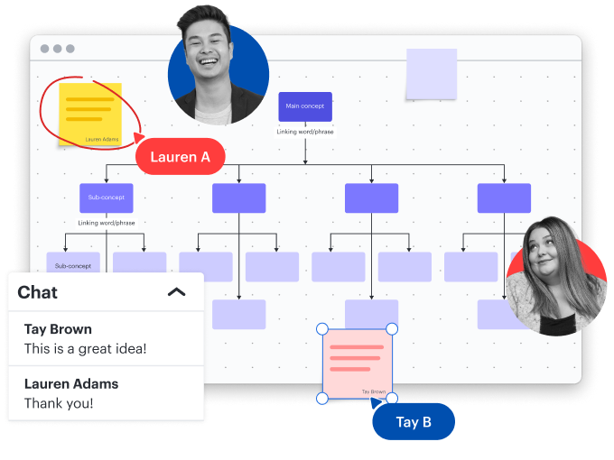 Bring your best ideas to life with our free concept map creator. Utilize freehand drawing to unlock creativity on an infinite canvas. Import customizable templates for inspiration and add sticky notes to collaborate with your team. Lucidspark’s concept map builder makes brainstorming effortless.