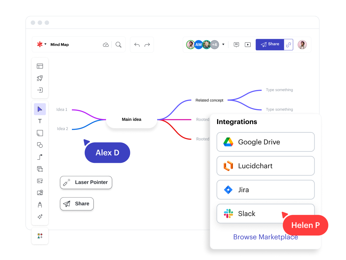 Accelerate your ideas using the applications you already know and love. Import and export your visuals to Lucidchart, or take your ideas on the road to already established Slack channels, Google Drive, and more. Our integrations lets you access, edit, and share your boards using powerful and user-friendly interfaces.
