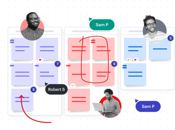 Keep participants engaged and on track with Breakout Boards, a timer, laser pointer, and more. Move seamlessly from ideation to action with features like Visual Activities, voting, and Lucid Cards to plan, organize, and assign tasks.