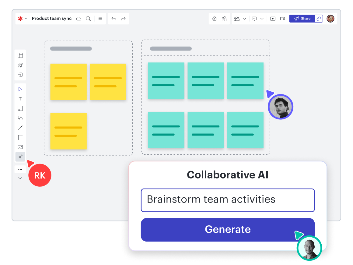 Be more proactive, productive, and creative. Use AI in Lucidspark to unlock and iterate on possibilities you might not have seen before.
