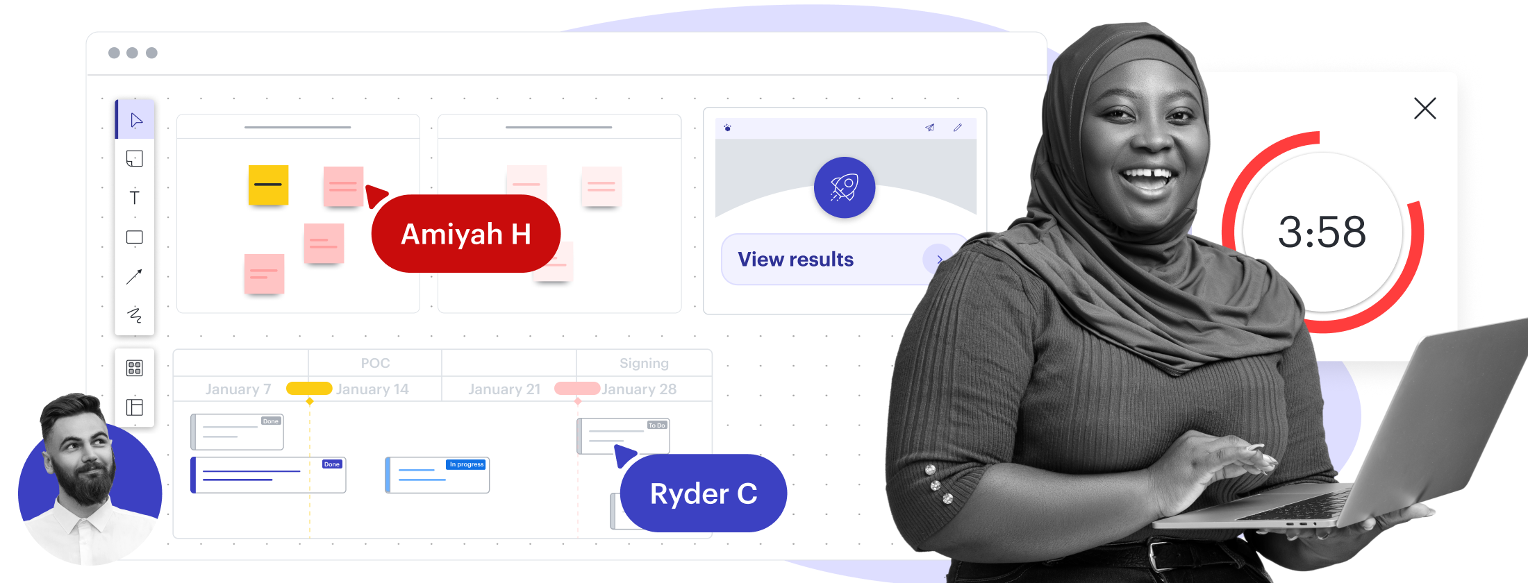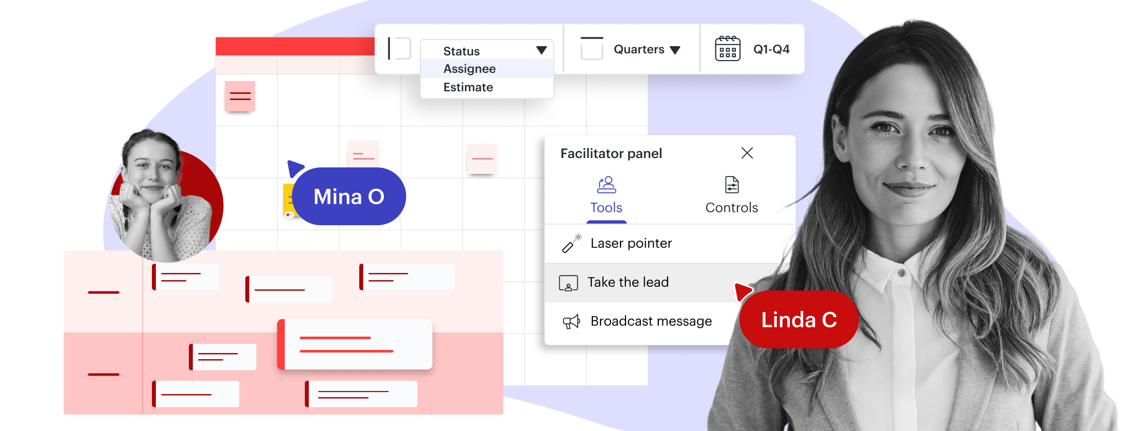 Level up your big room, OKR, or project planning sessions by giving every collaborator a voice. Use Visual Activities, breakout boards, and voting to make sessions interactive.