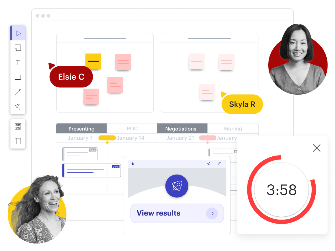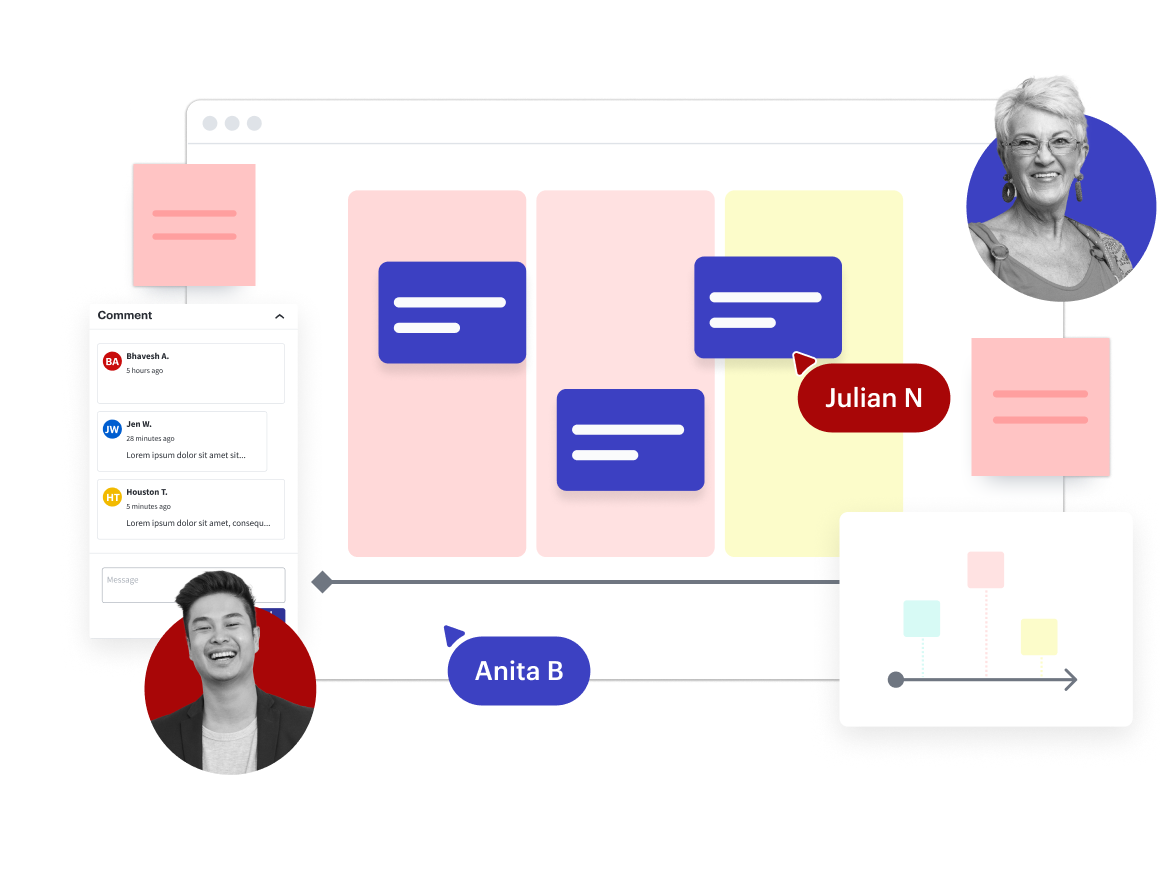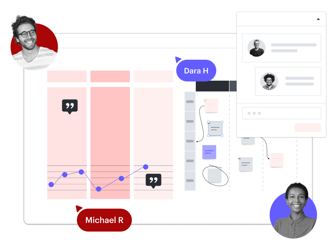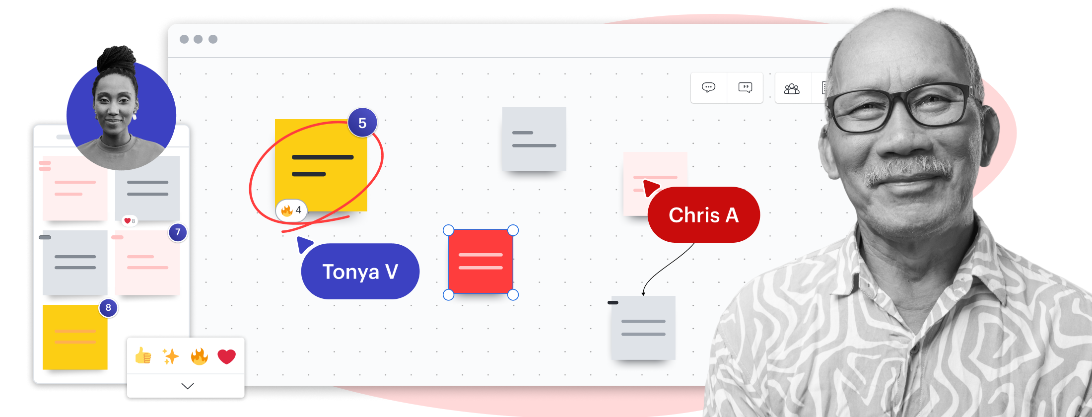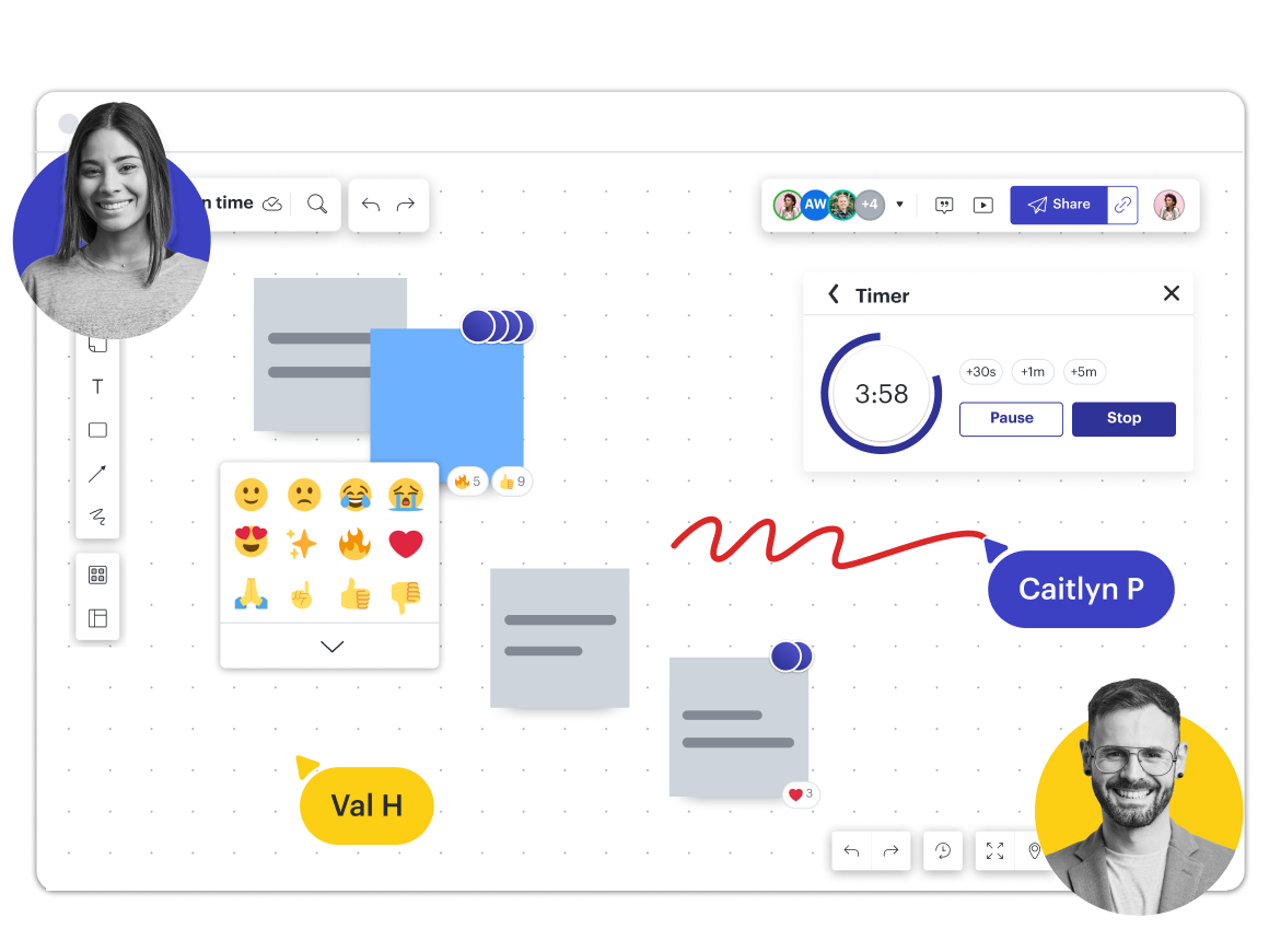 Bring your team together to share ideas and identify gaps in the user experience. Use sticky notes, images, emojis, and more to make your sessions interactive and productive.