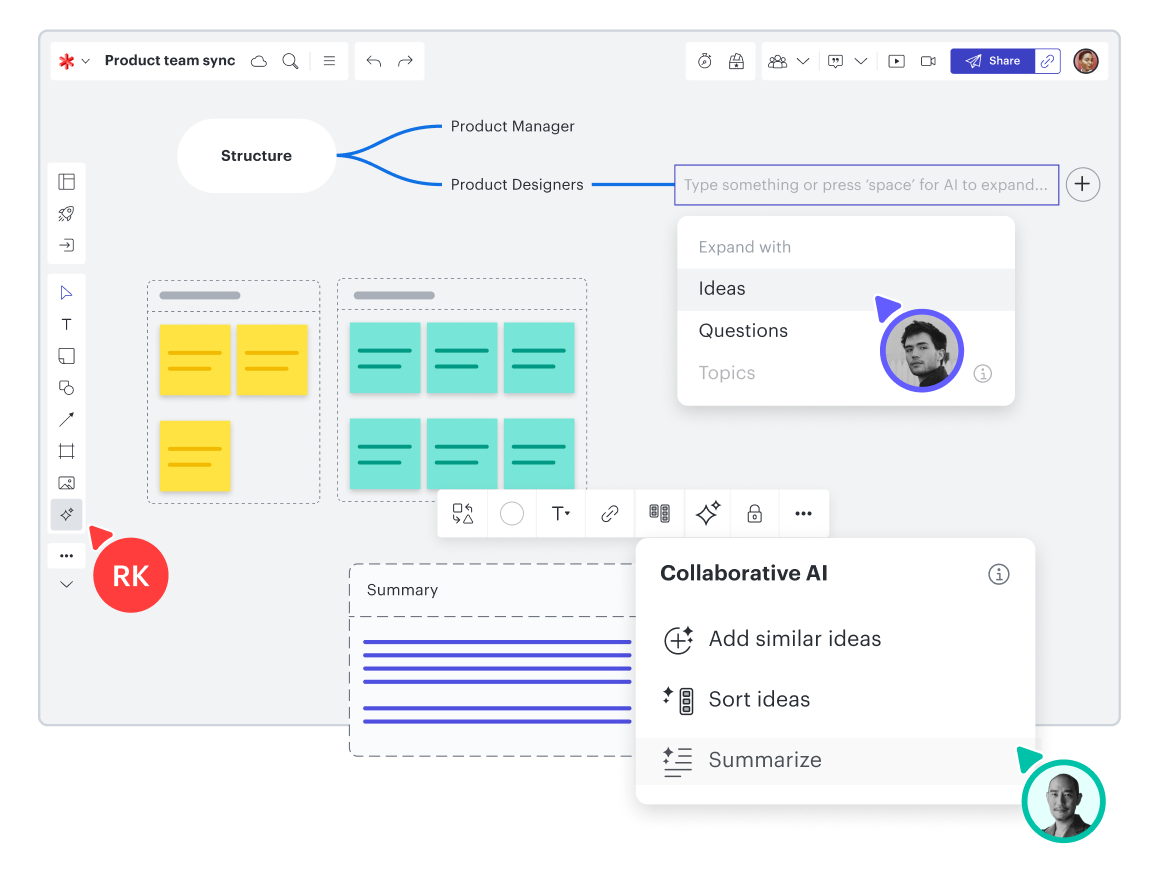 Generate new ideas for delighting your customers. Use AI to explore divergent thinking, uncover key themes, and automatically summarize your working sessions.