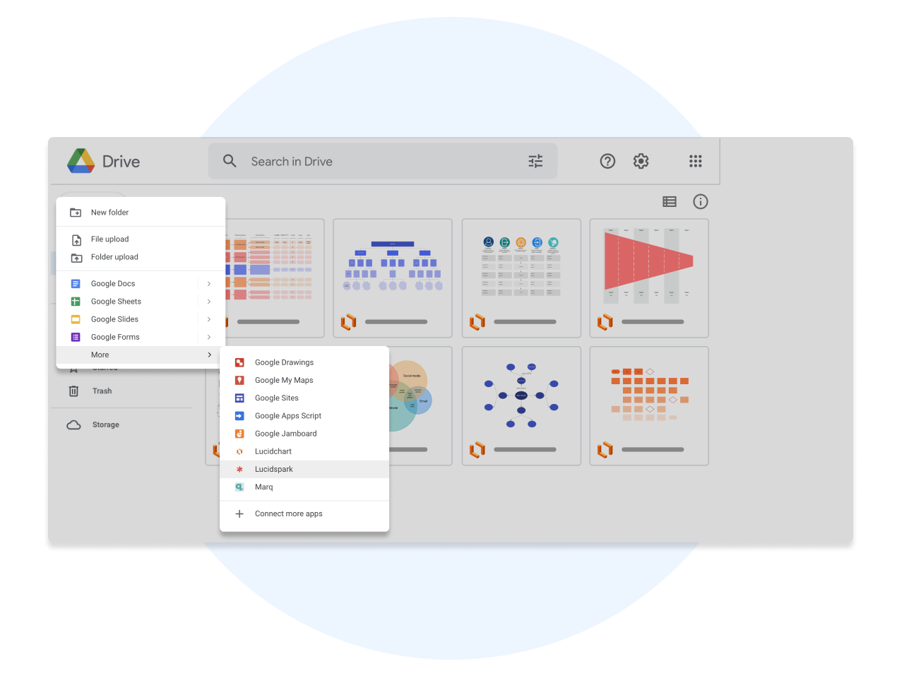 Sync your Lucid documents with Google Drive for easy access to all your visuals. Quickly create, edit, share, and store diagrams within the familiar Google interface.